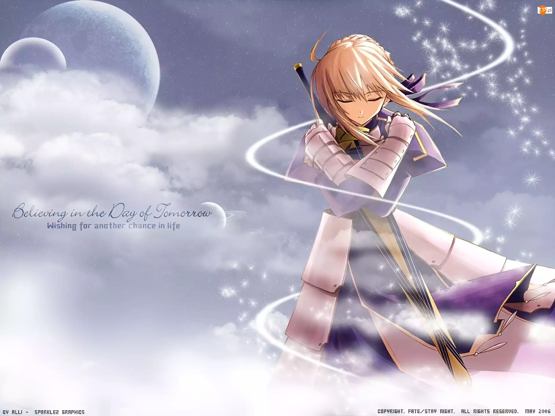 Fate Stay Night, zbroja, dziewczyna, księżyc