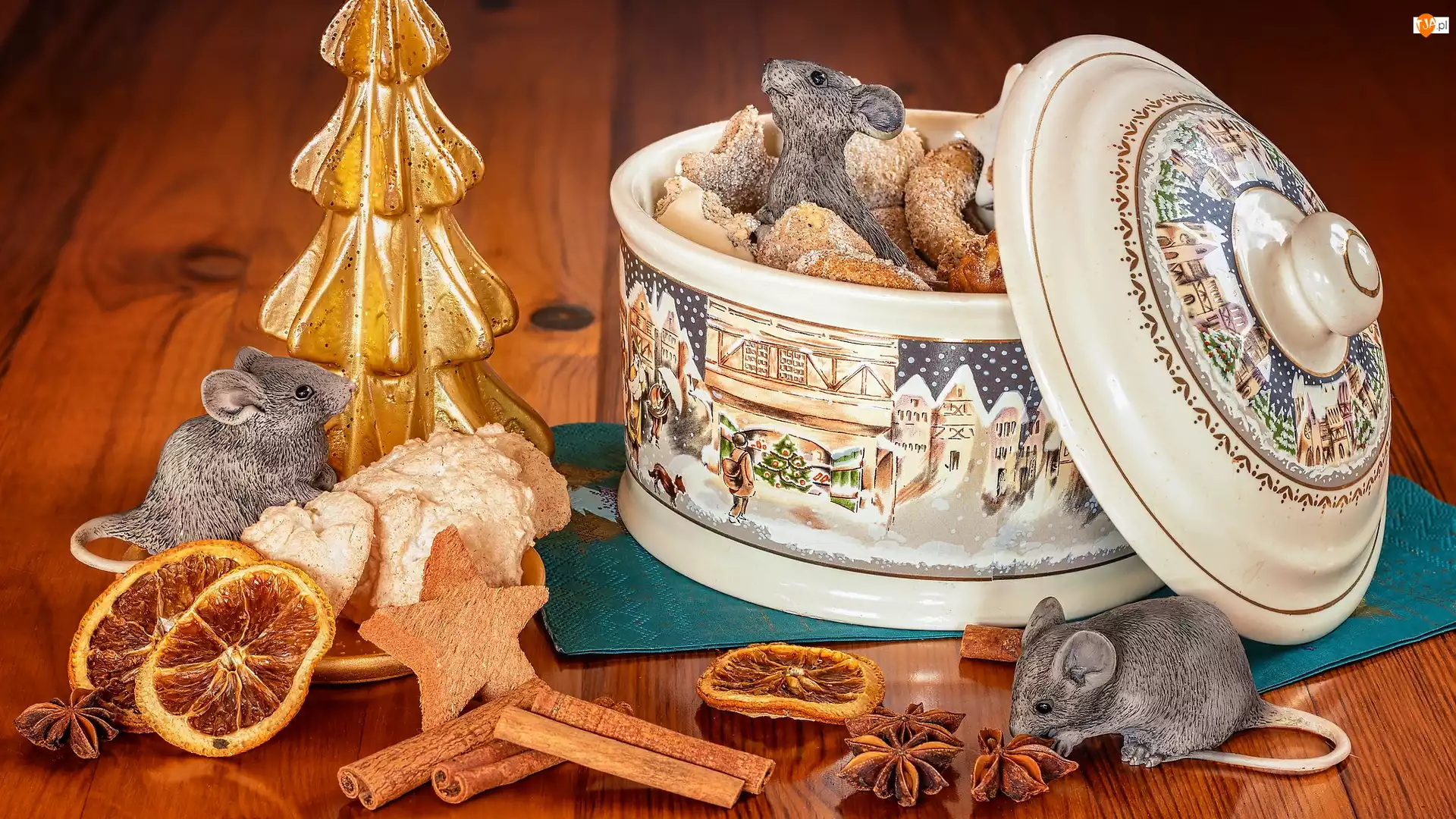 Figurki, Anyż, Kompozycja, Myszki, Choinka, Cukiernica, Cynamon