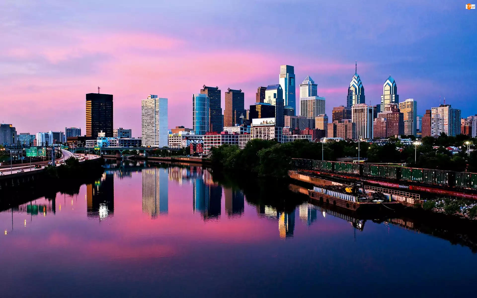 Filadelfia, Drapacze, Delaware, Fragment, Chmur, Åšwit, Miasta, Rzeka