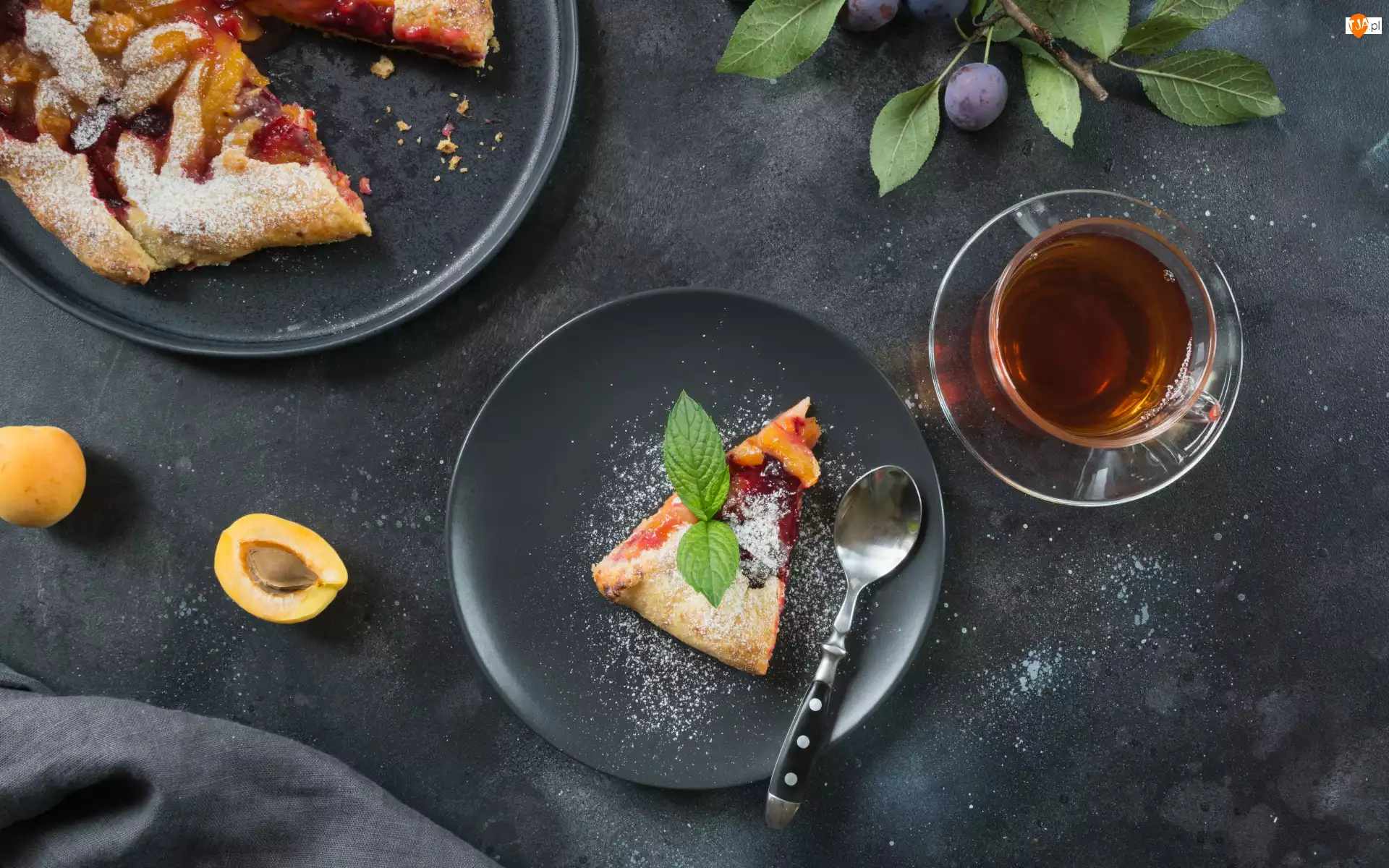 Śliwki, Ciasto, Filiżanka, Herbata