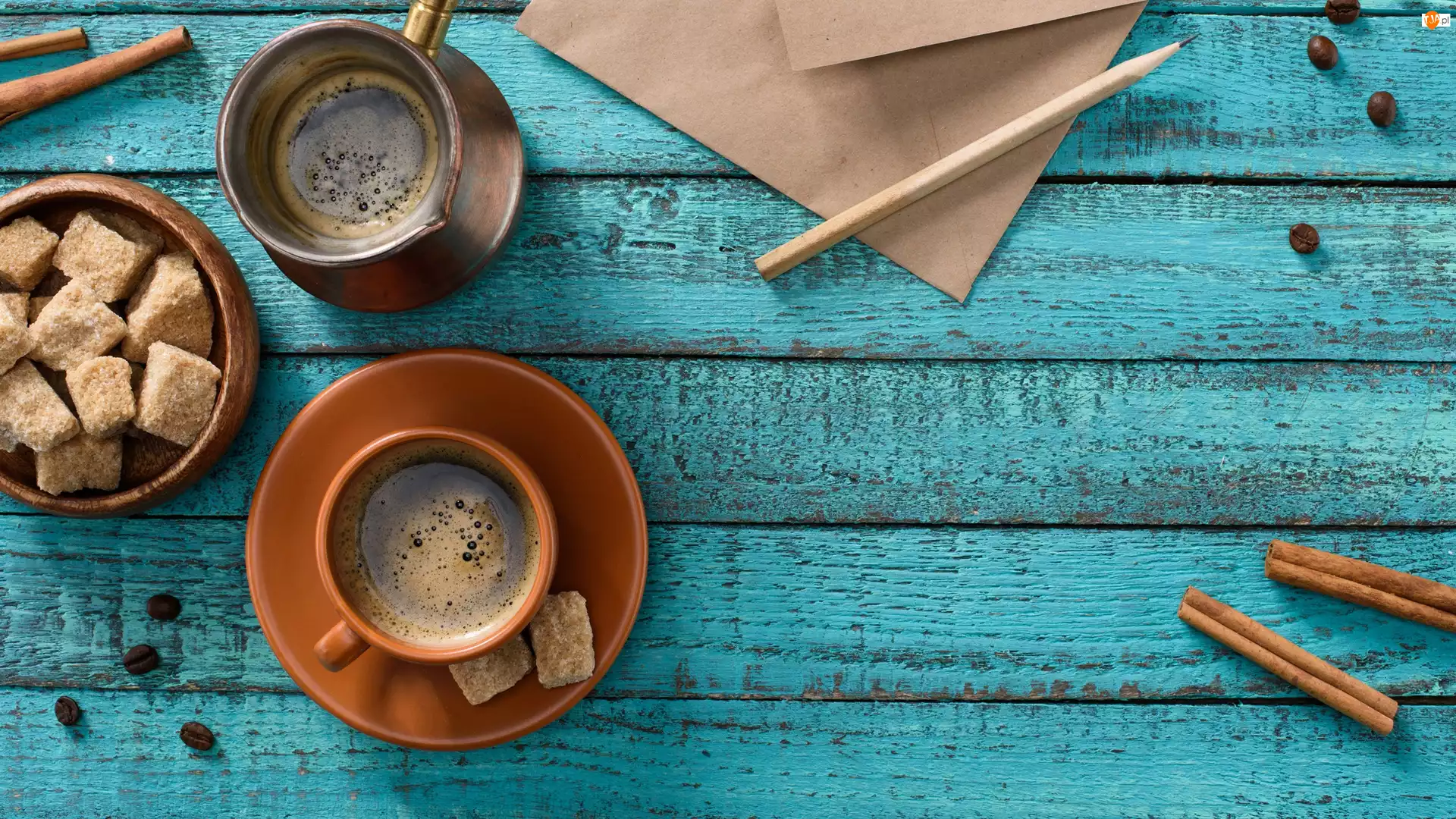 Filiżanka, Kawa, Cukier, , Cynamon, Koperta