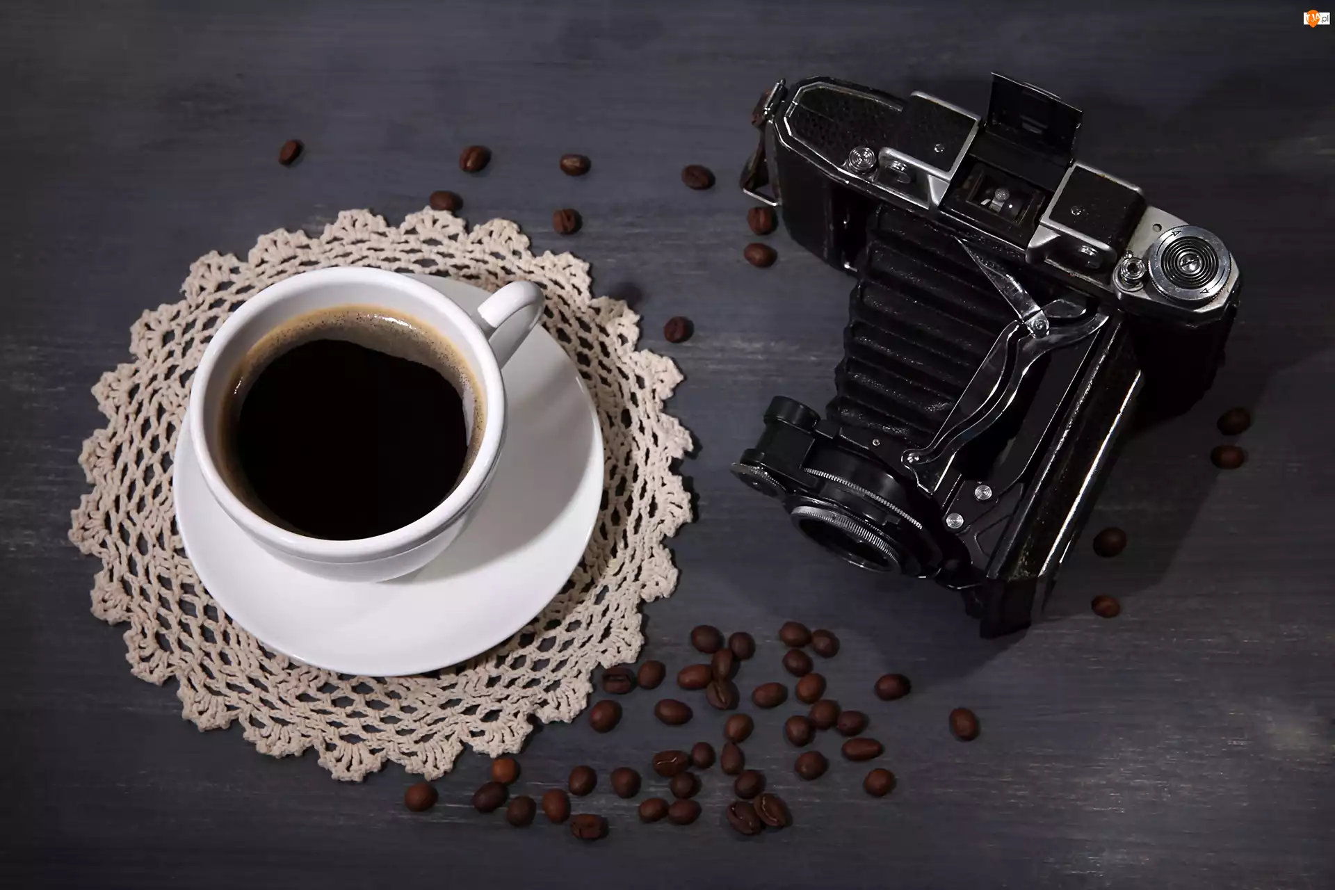 Serwetka, Aparat fotograficzny, Kawa, Filiżanka, Ziarna