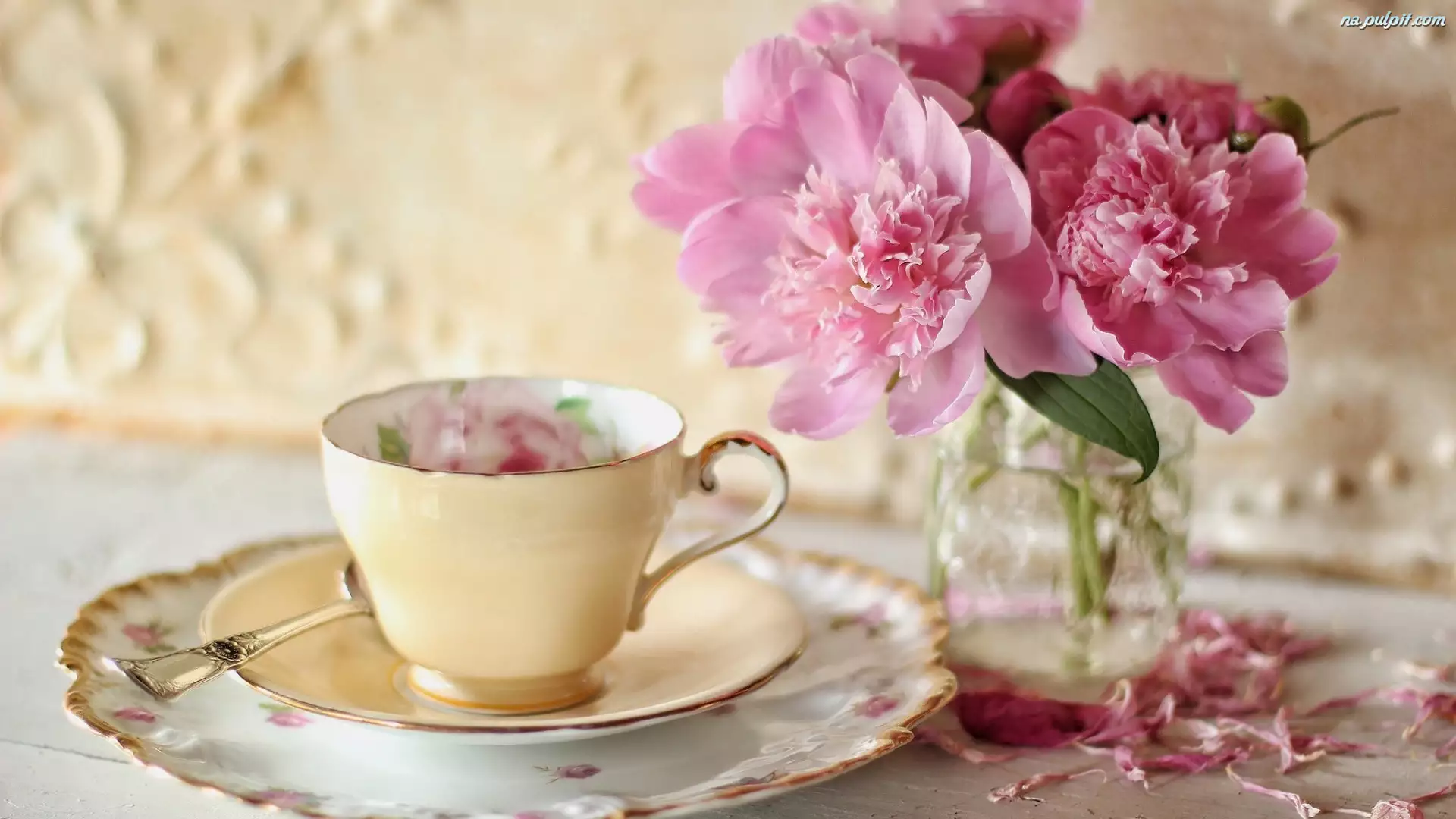 Filiżanka, Kompozycja, Piwonie