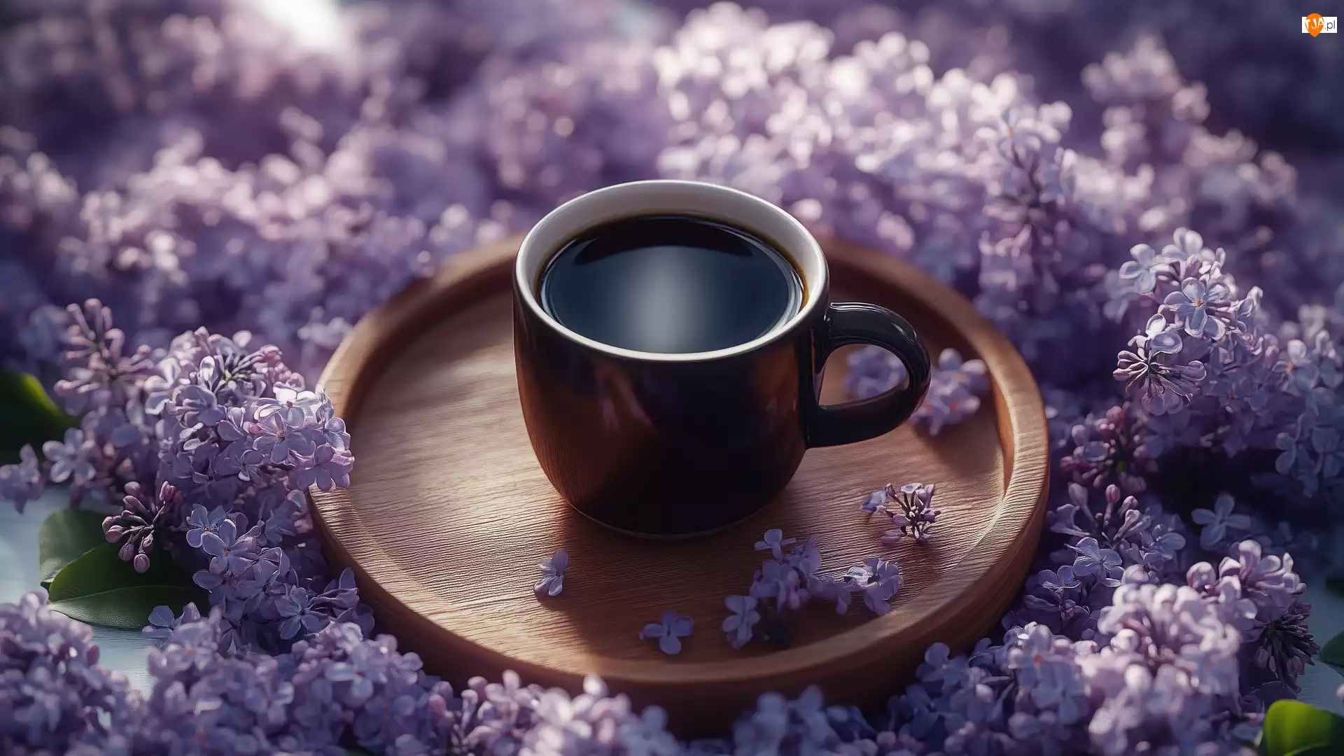 Filiżanka, Taca, Lilak, Bez, Kawa