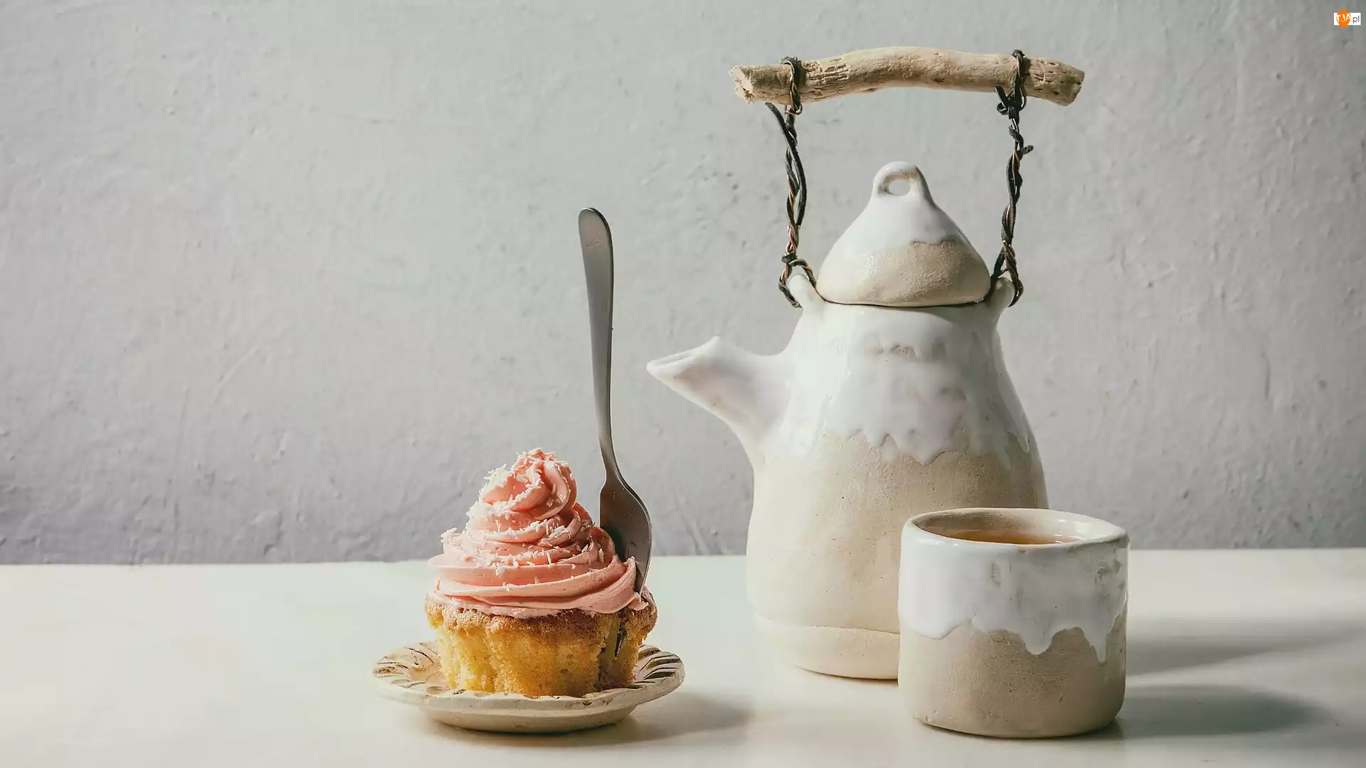 Dzbanek, Czajnik, Herbata, Widelec, Filiżanka, Babeczka