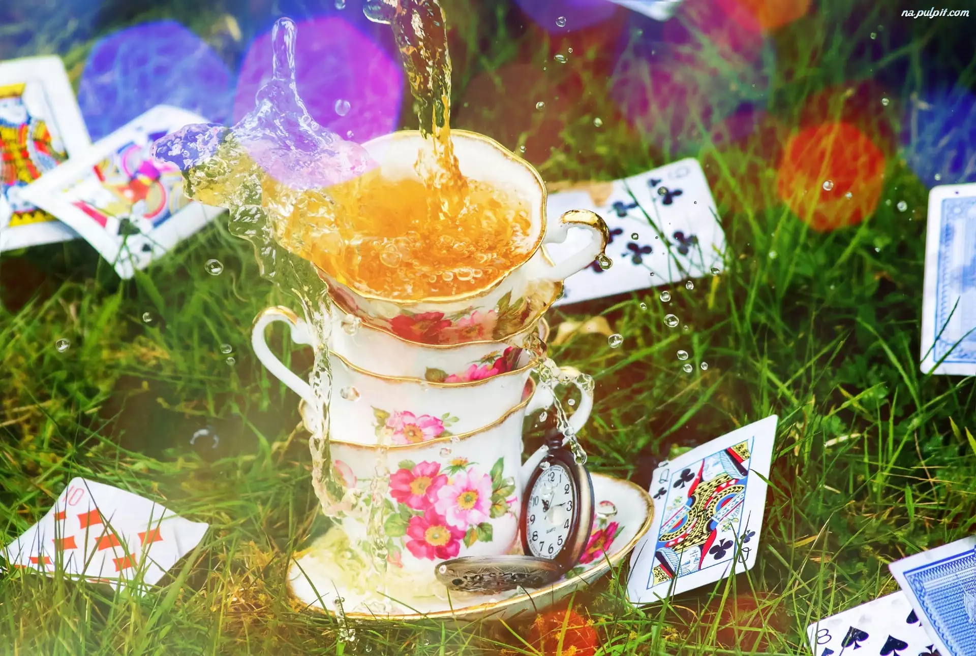 Filiżanki, Zegar, Herbata, Karty