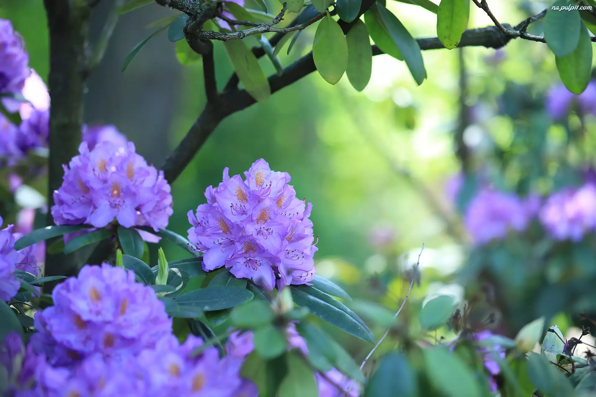 Fioletowe, Krzew, Różaneczniki, Azalie, Kwiaty