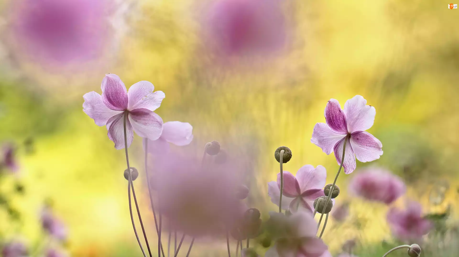 Różowe, Zawilce japońskie, Kwiaty