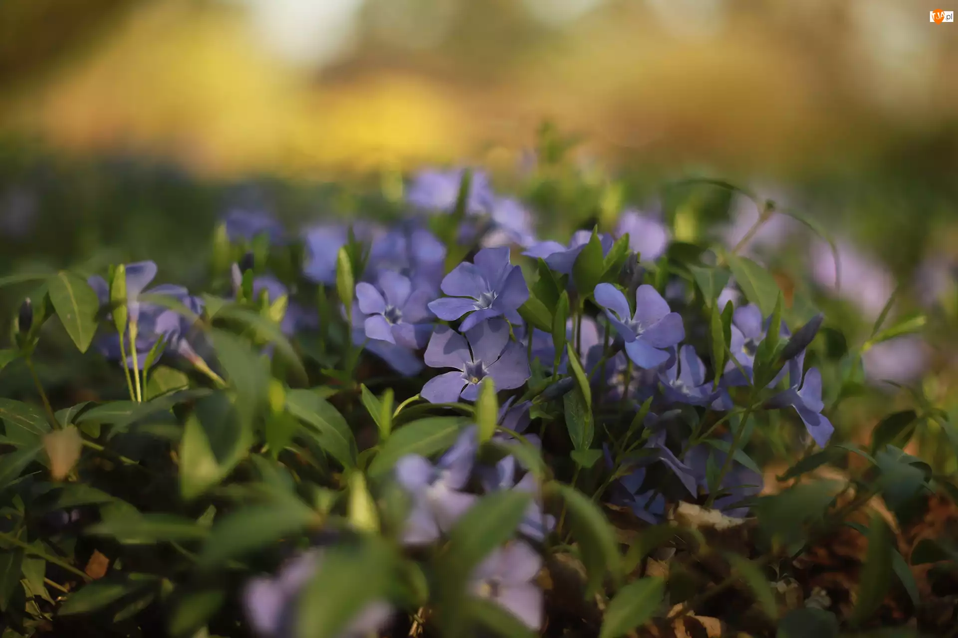 Zbliżenie, Fioletowe, Kwiaty, Barwinek