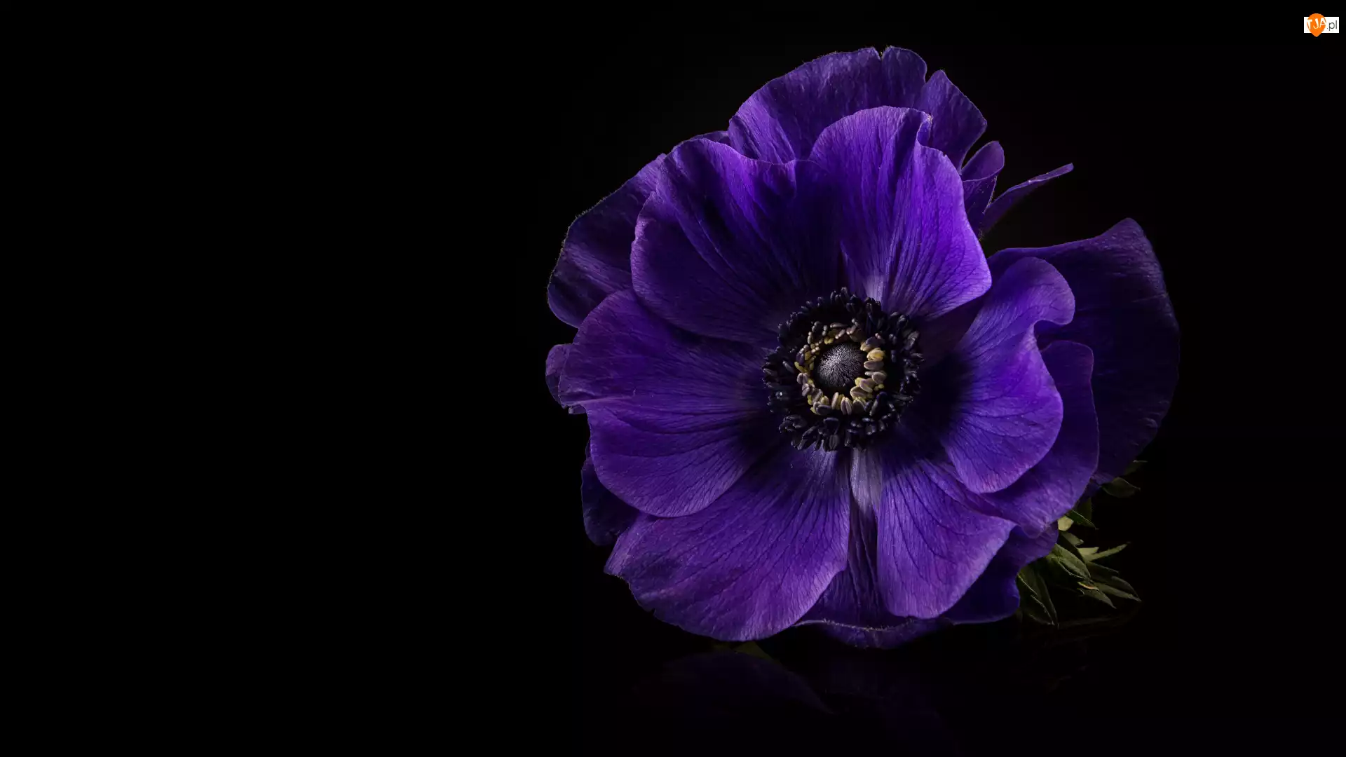 Fioletowy zawilec na ciemnym tle