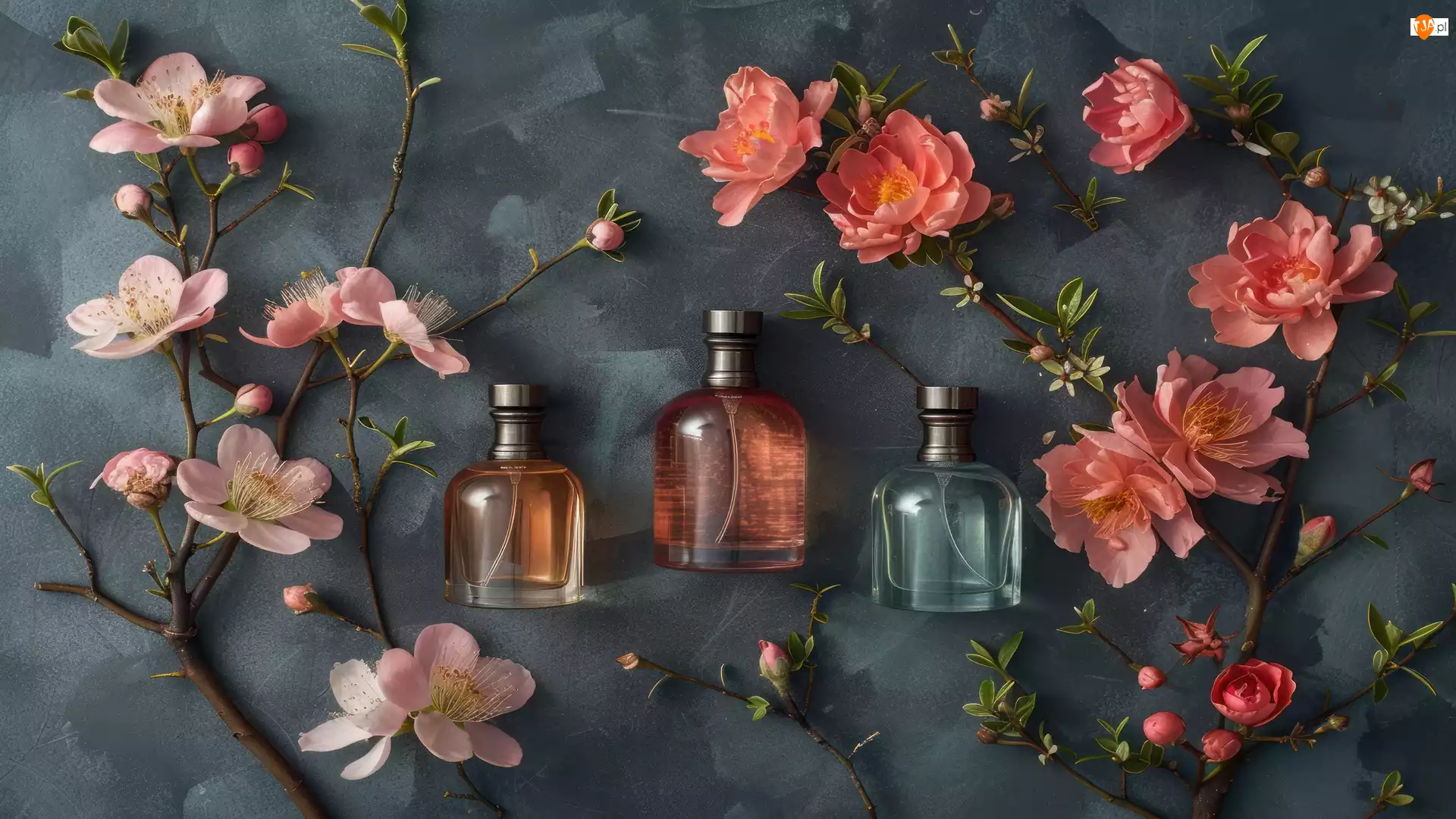 Flakony, Kompozycja, Trzy, Perfumy, Kwiaty