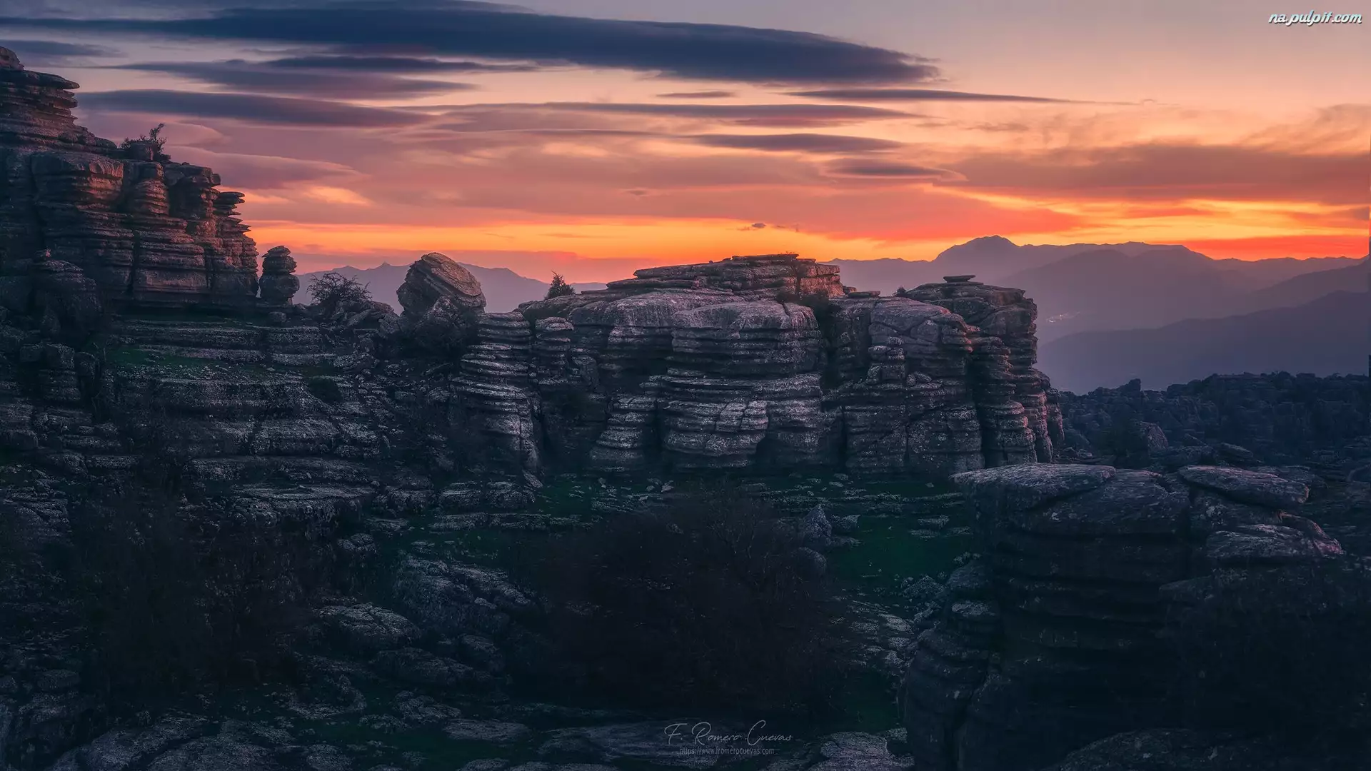 Formacja skalna, Góry, Hiszpania, Zachód słońca, Prowincja Malaga, Rezerwat Torcal de Antequera, Skały