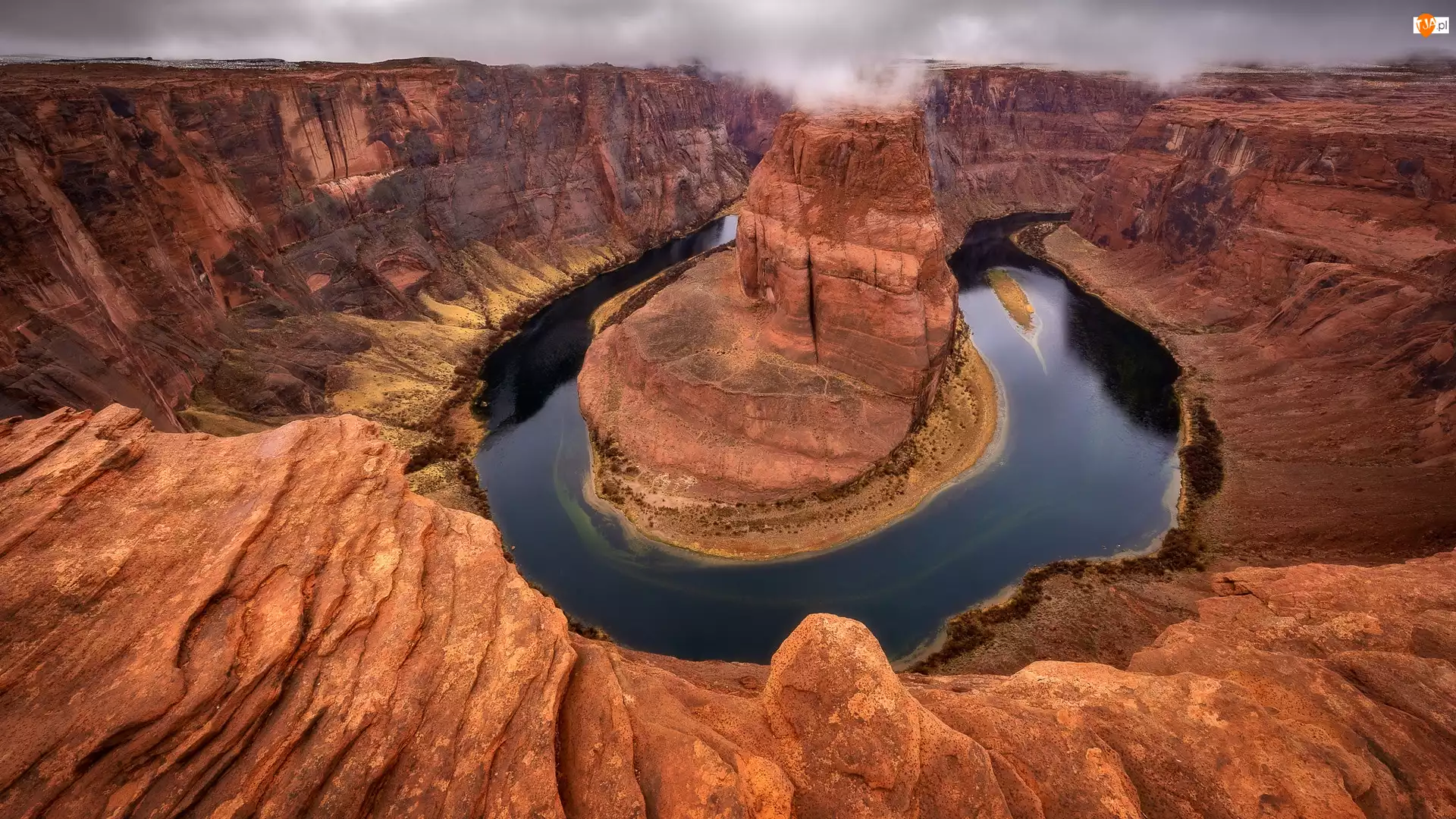Stany Zjednoczone, Park Narodowy Glen Canyon, Arizona, Horseshoe Bend, Skały, Rzeka, Kolorado River, Kanion, Zakole