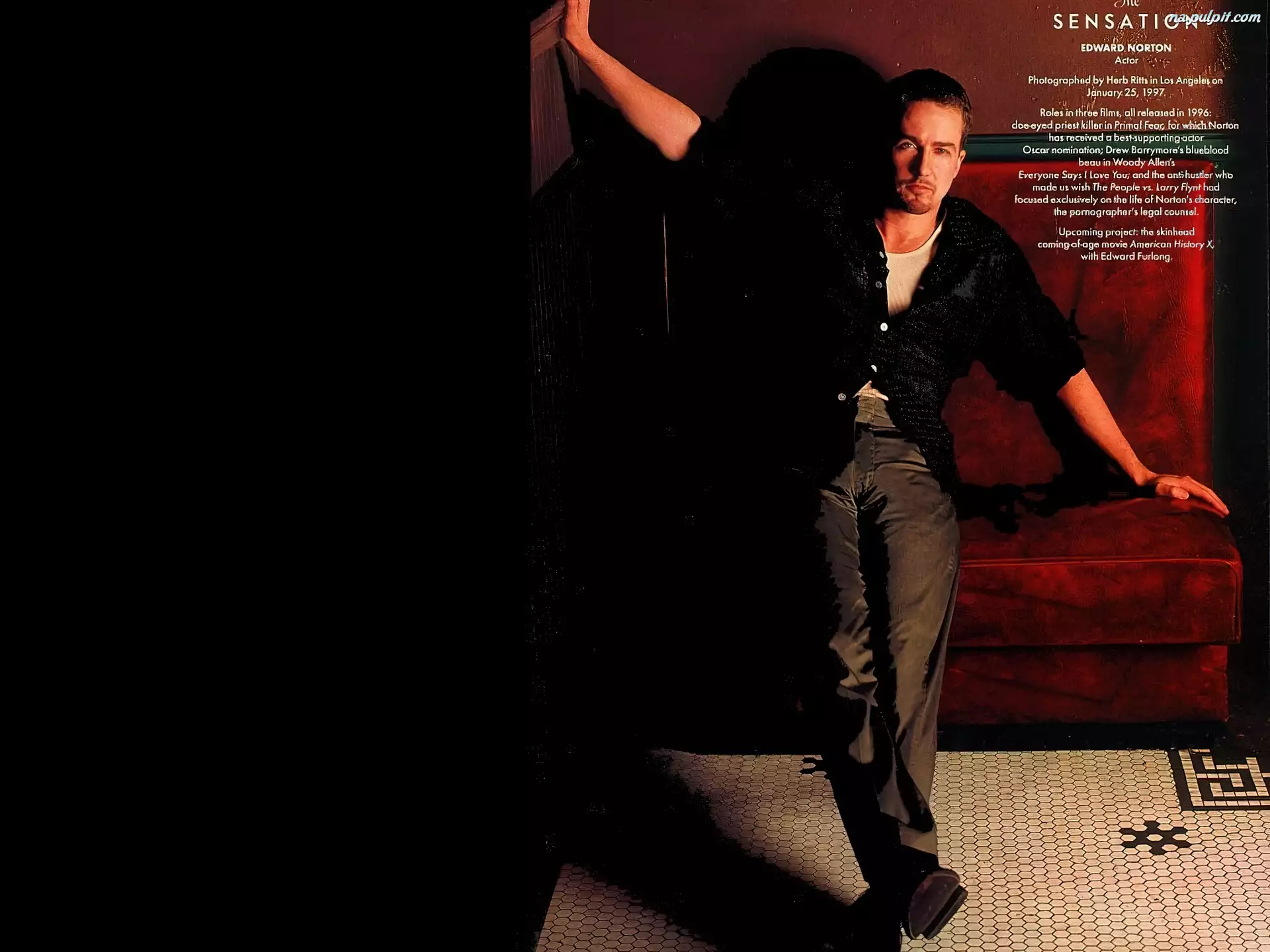 fotel, Edward Norton, czarna koszula