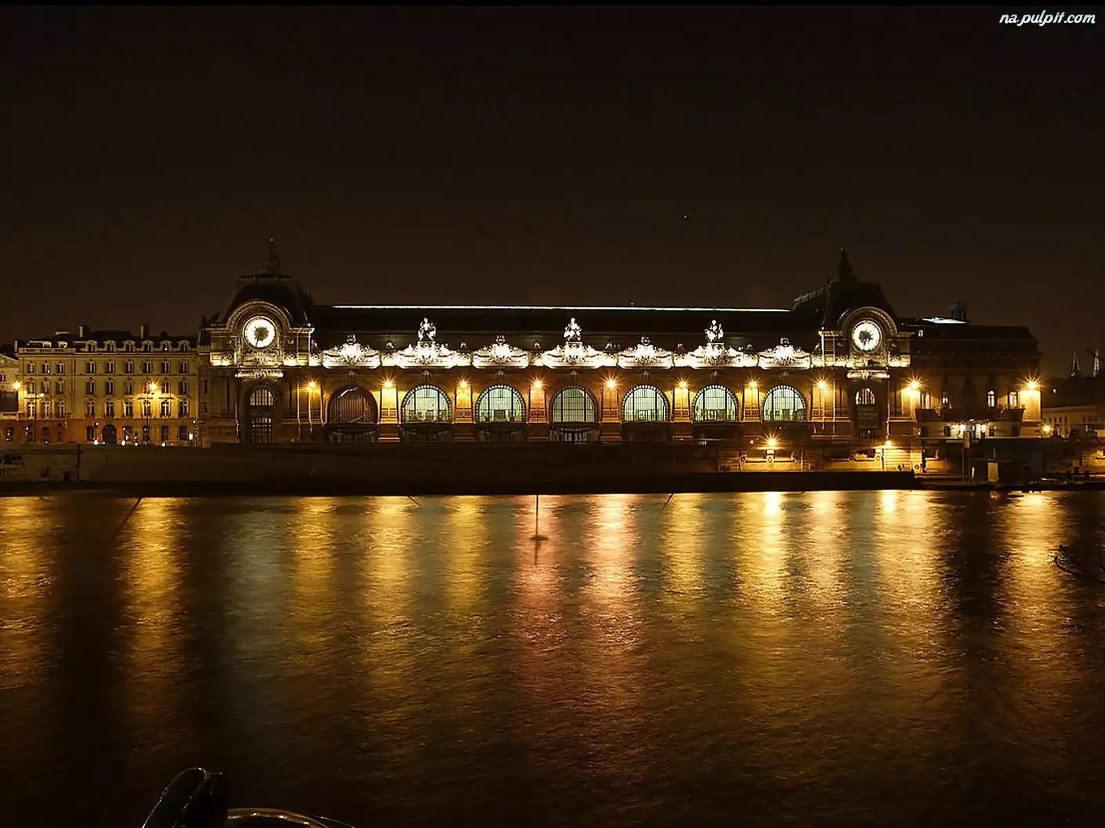Francja, Swiatła, Zabytek, Noc, Musee d'Orsay, Paryż