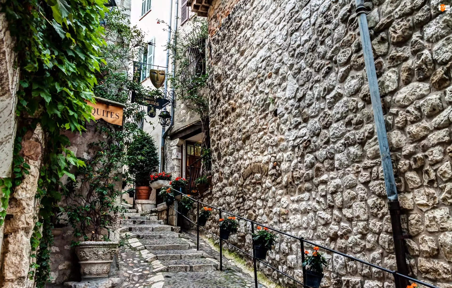 Francja, Szyldy, Saint-Paul-de-Vence, Kawiarnia, Lazurowe Wybrzeże, Schody