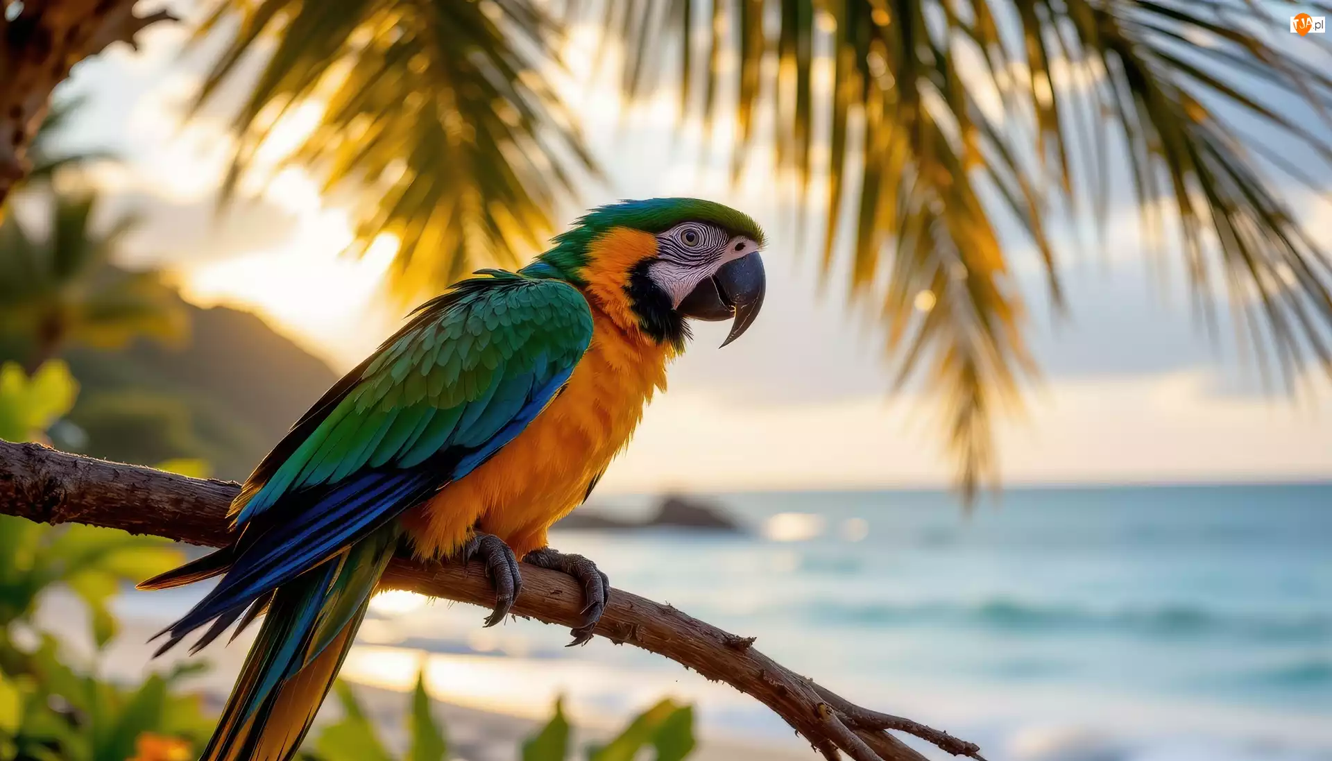 Gałąź, Grafika AI, Ara, Papuga, Morze