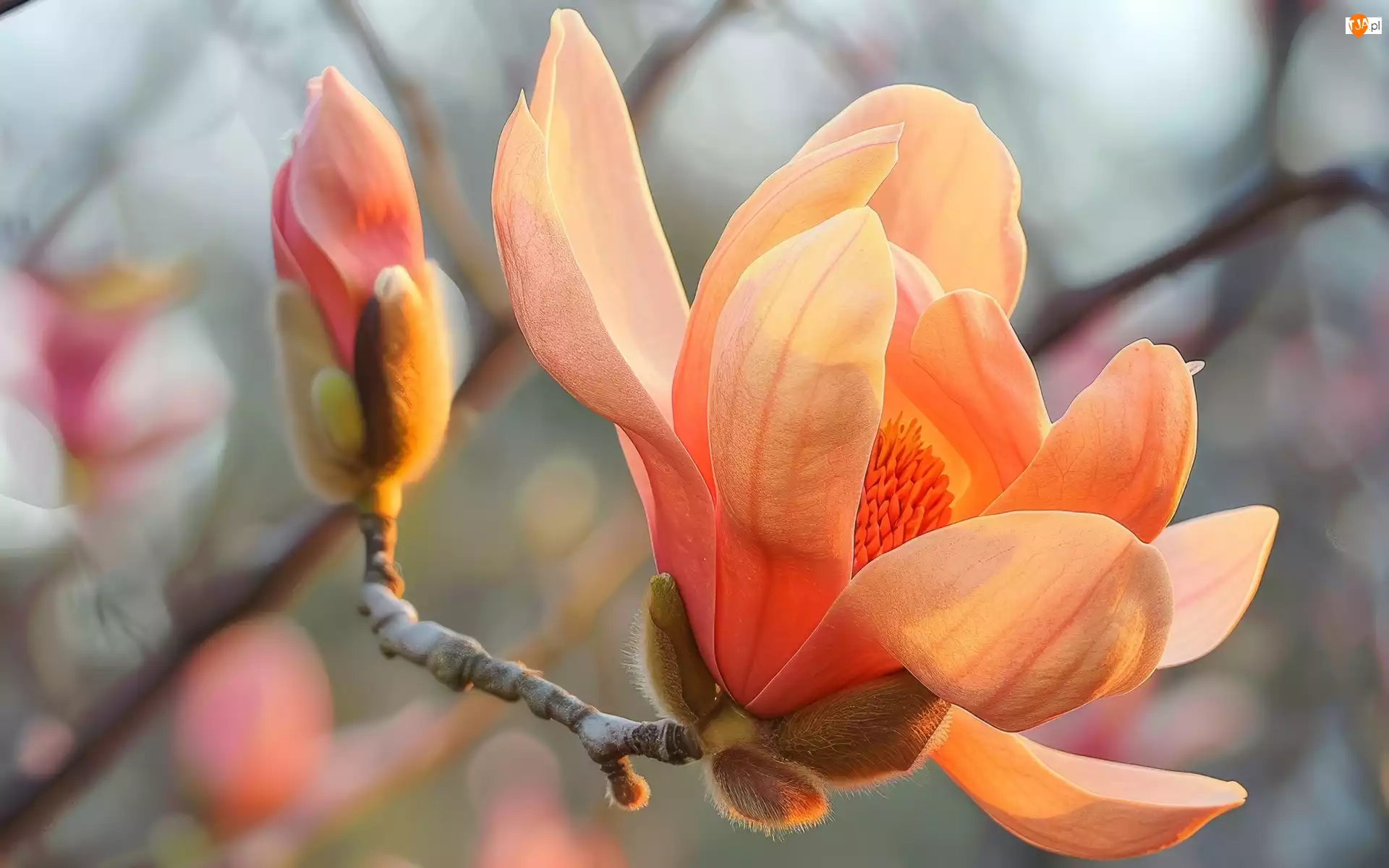 Gałązka, Magnolia, Kwiat, Pąk