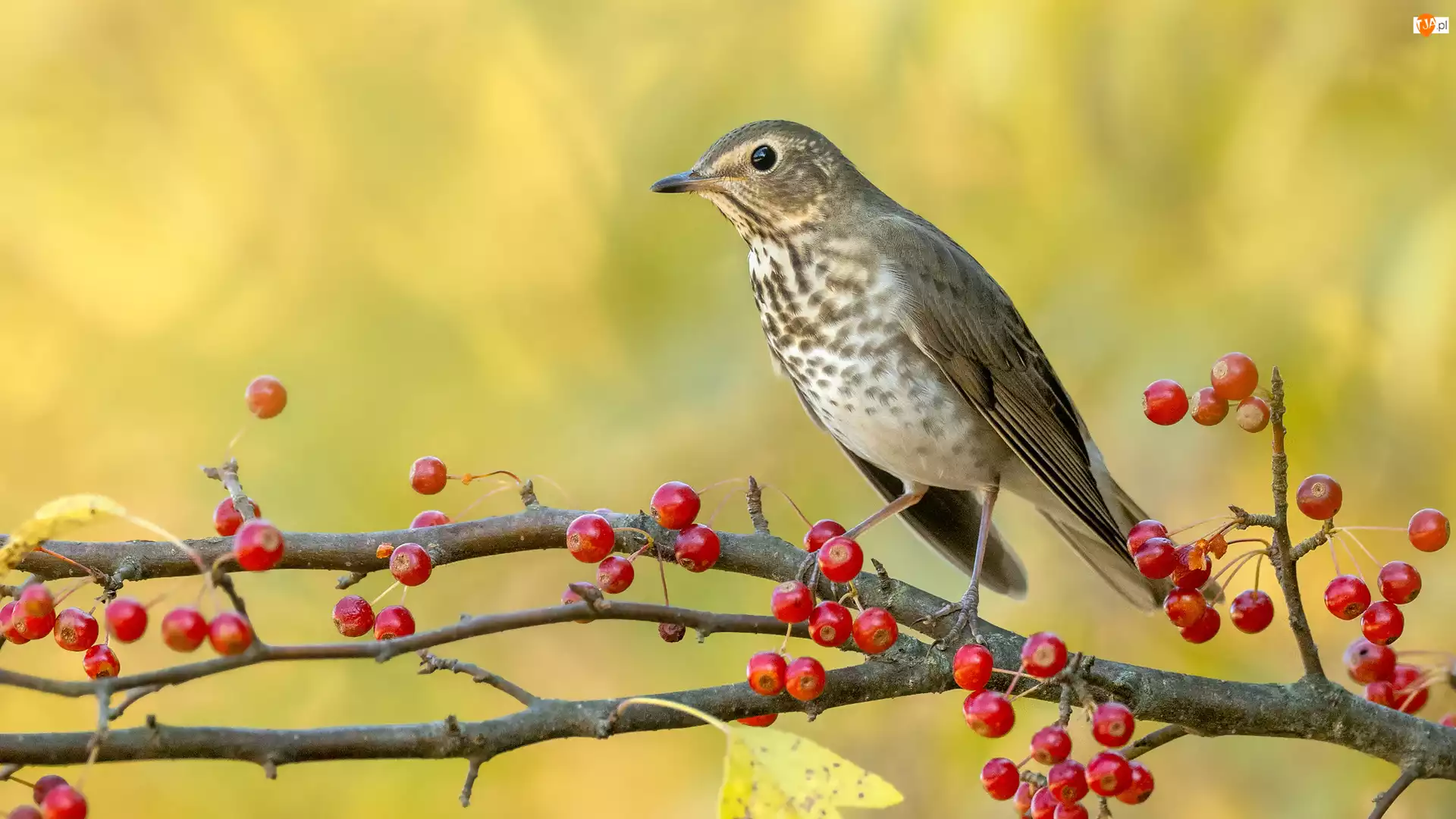 Gałązka, Ptak, Drozd śpiewak, Owoce