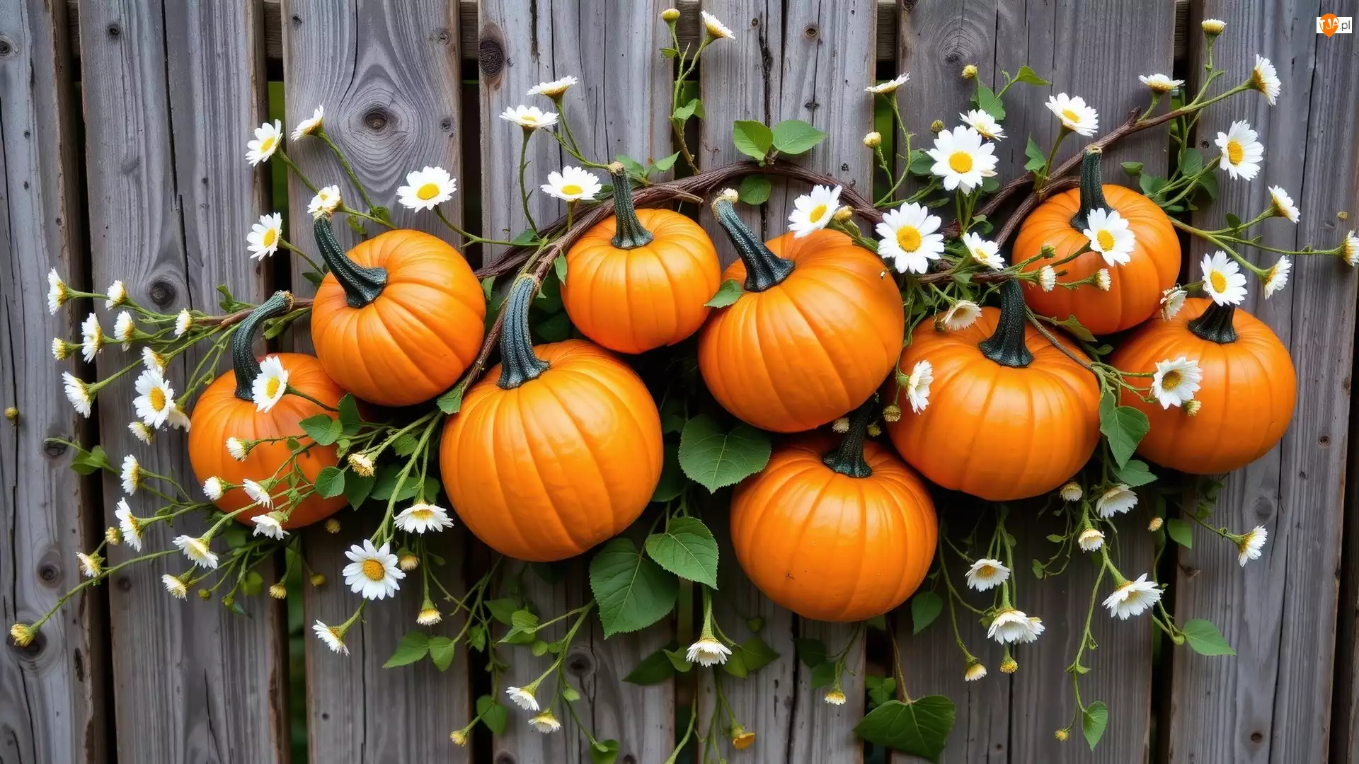 Gałązki, Dynie, Kwiaty, Deski, Białe, Listki