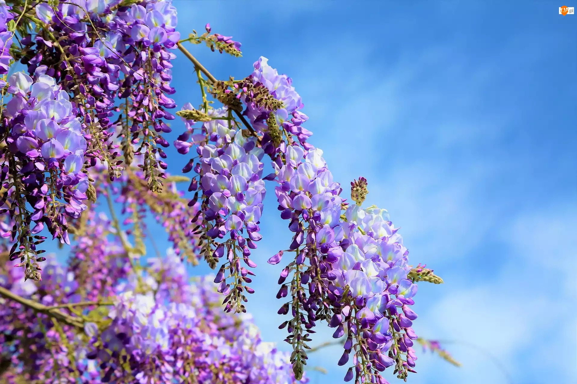 Niebo, Fioletowe, Kwiaty, Glicynia