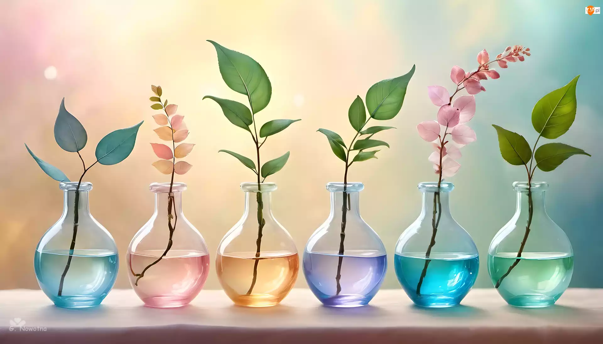 Gałązki, Grafika, Wazoniki, Kolorowe, Liście