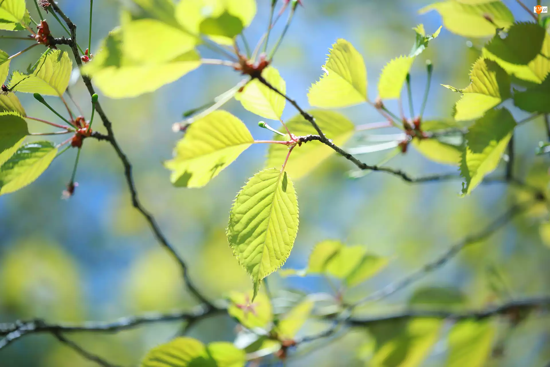 Gałązki, Rozświetlone, Zielone, Liście