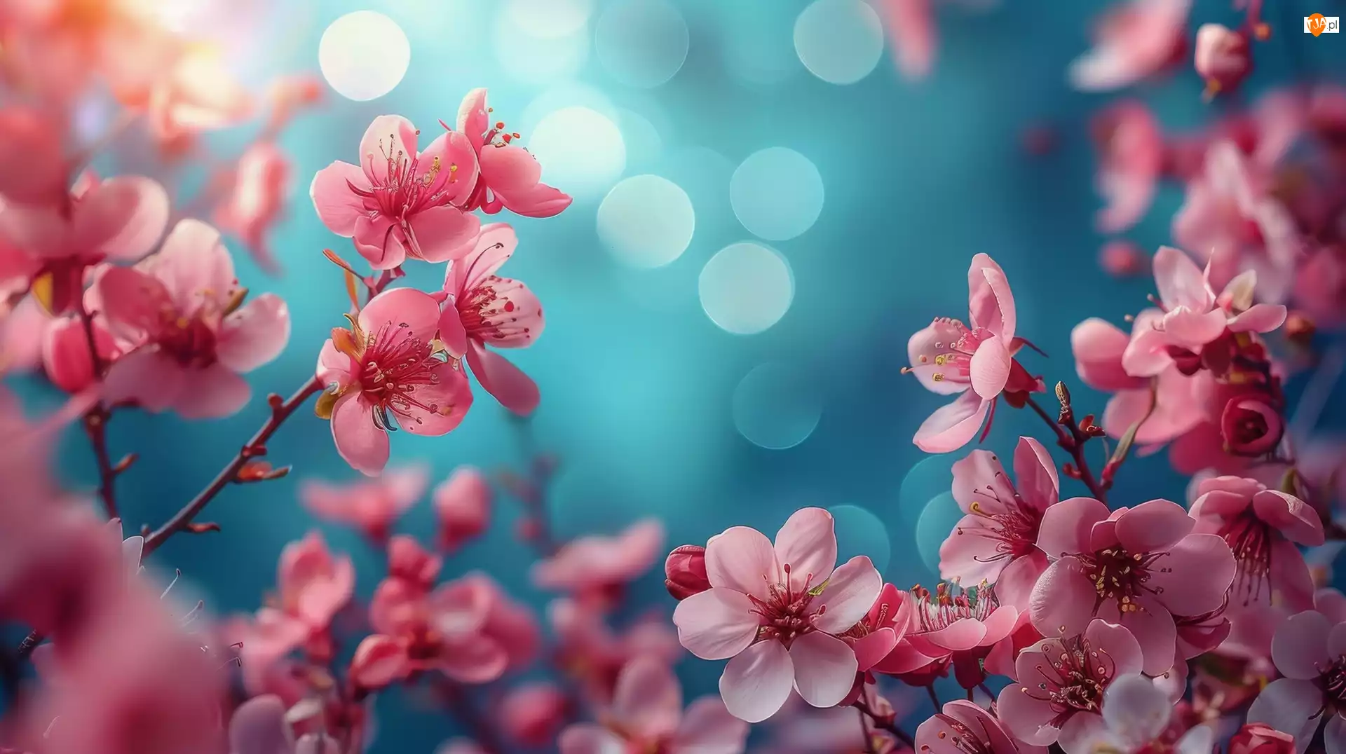 Gałązki, Tło, Kwiaty, Różowe, Niebieskie