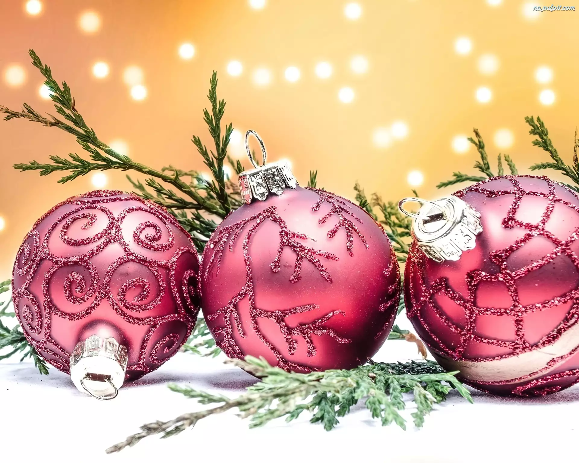 Gałązki, Trzy, Bombki, Różowe, Zielone