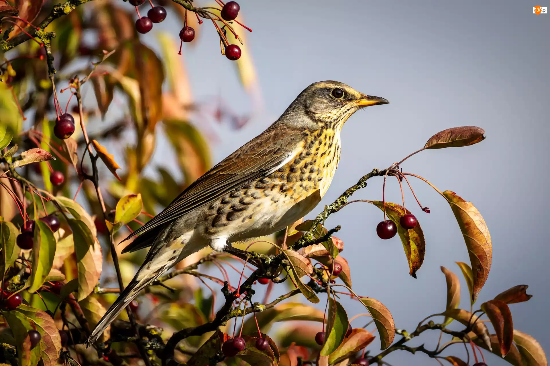 Gałęzie, Owoce, Ptak, Kwiczoł, Liście