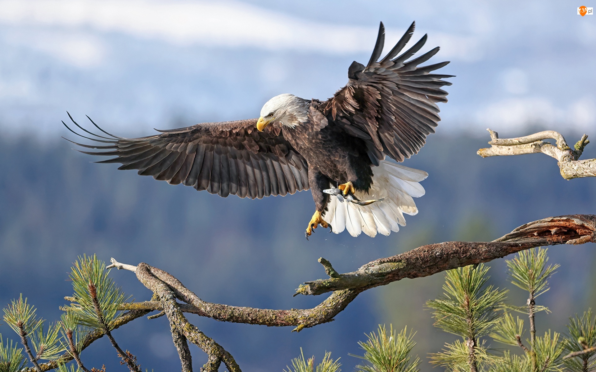 Gałęzie, Ptak, Bielik amerykański, Lot