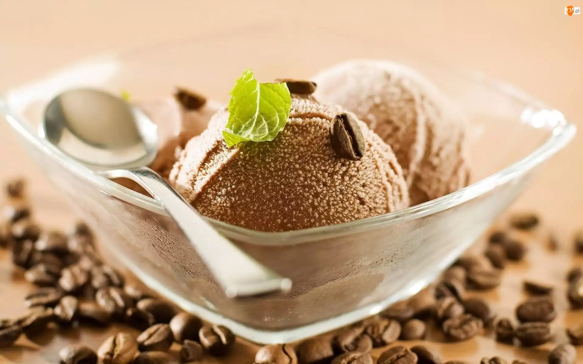 Gałki lodów kawowych w miseczce