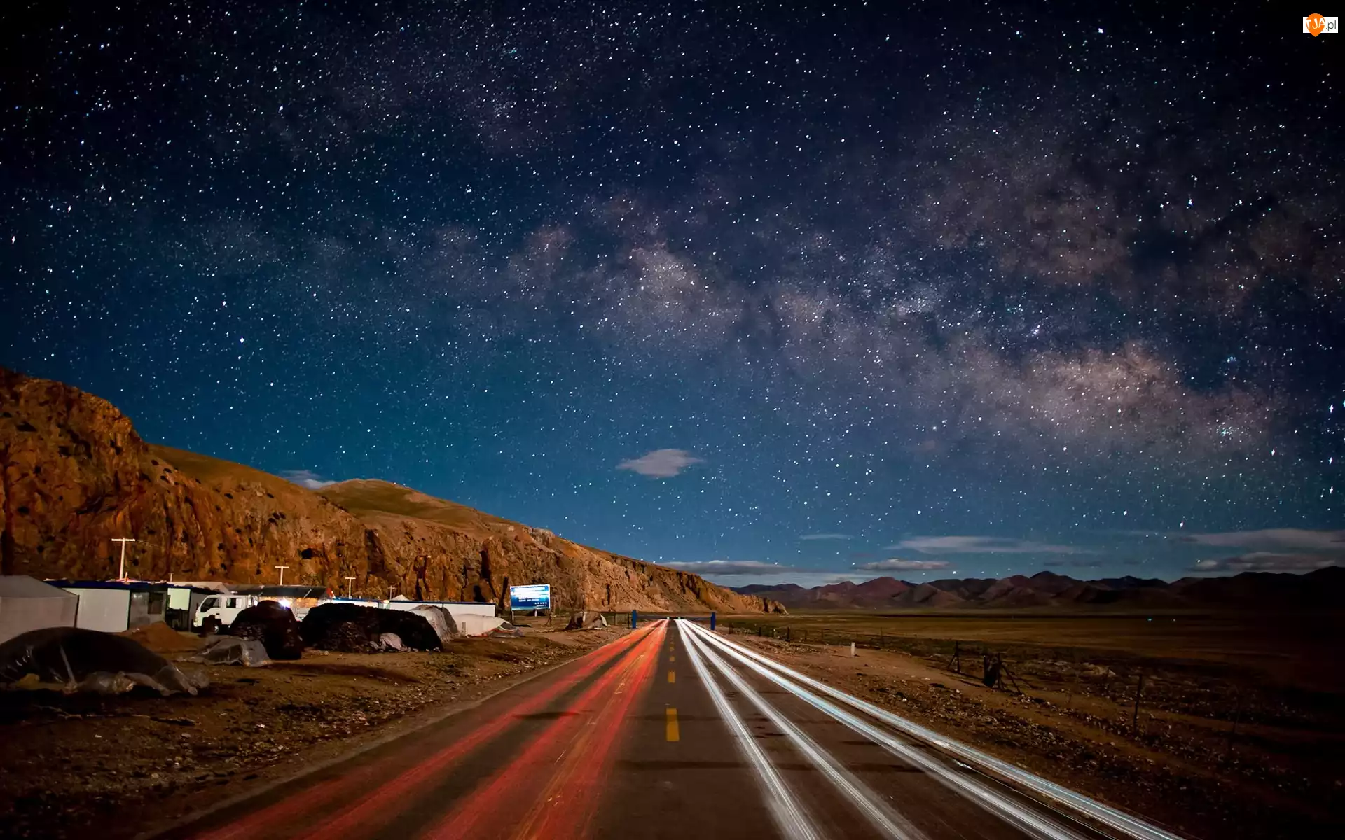 Góry, Niebo, Pustynia, Droga, Gwiaździste