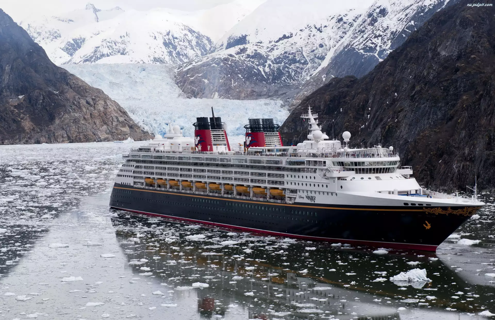 Góry, Statek, Lodowe, USA, Kry, Alaska