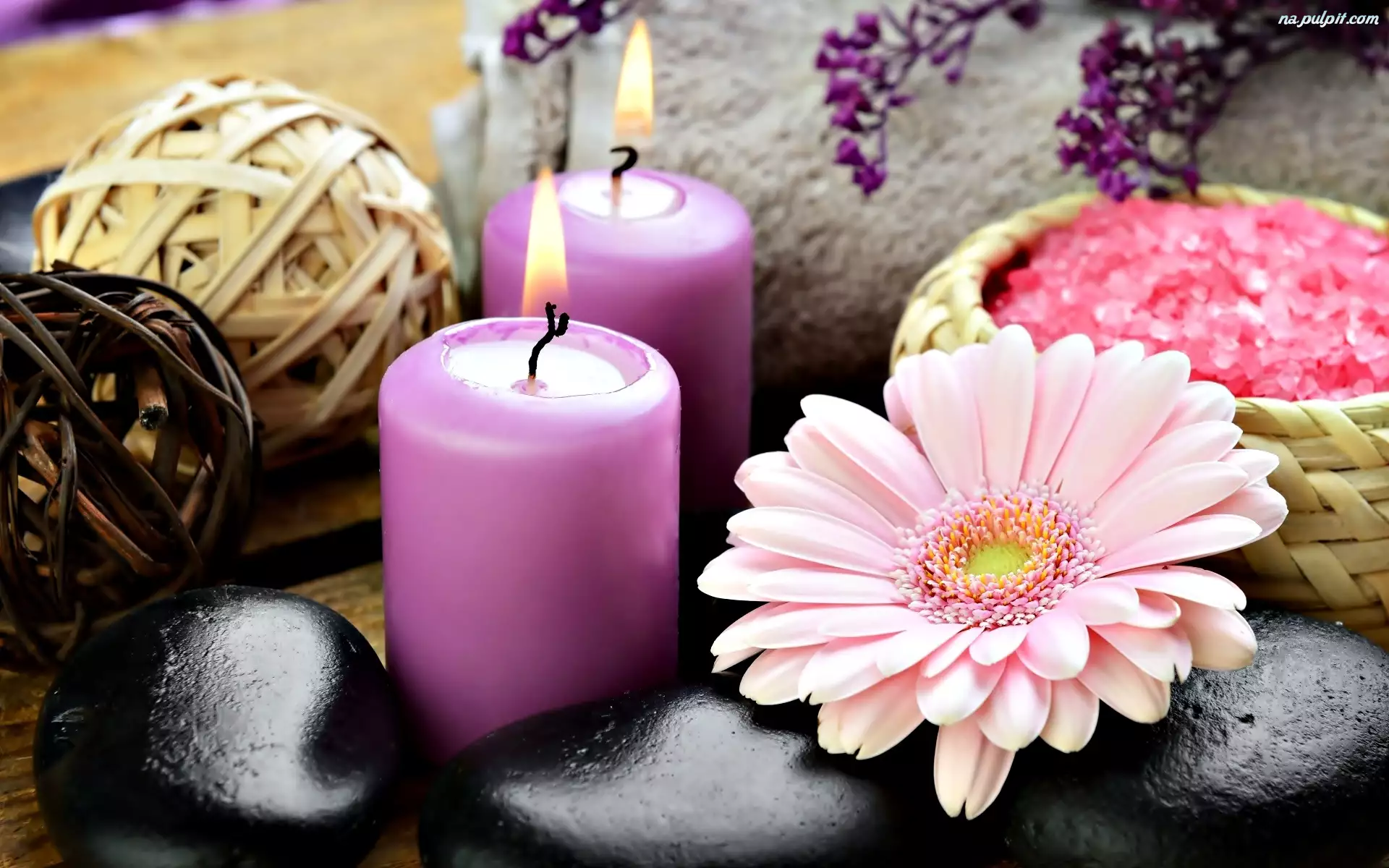 Gerbera, Morska, Spa, Kompozycja, Kamienie, Sól, Świece