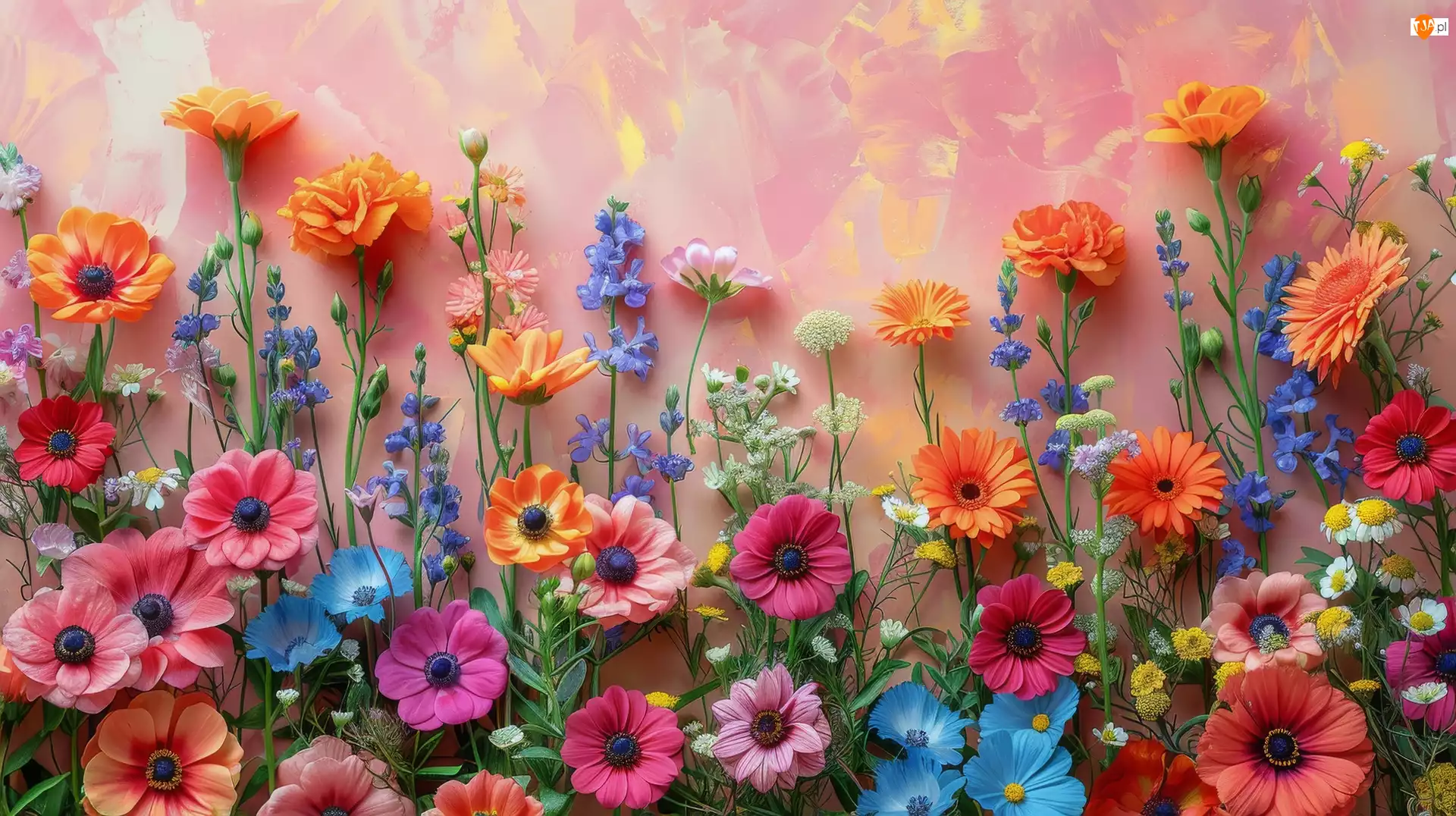 Gerbery, Kompozycja, Kwiaty, Kolorowe, Tło