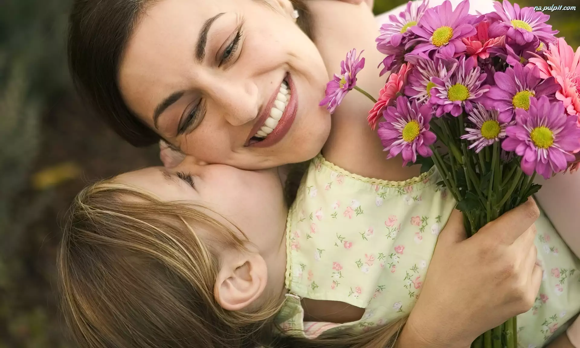 Bukiet, Gerbery, Dziecko, Mama, Kwiaty