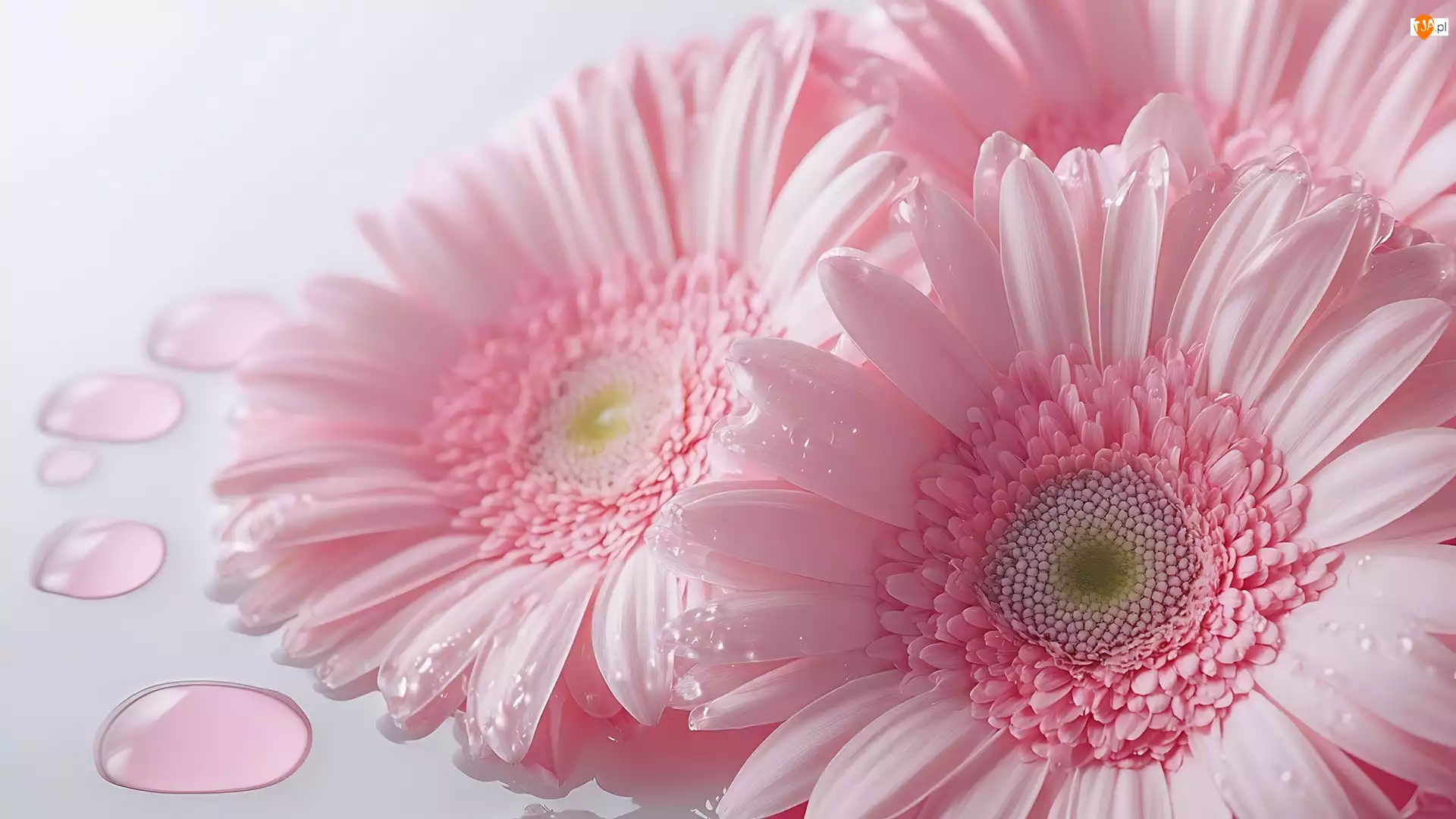 Gerbery, Wody, Różowe, Kwiaty, Krople