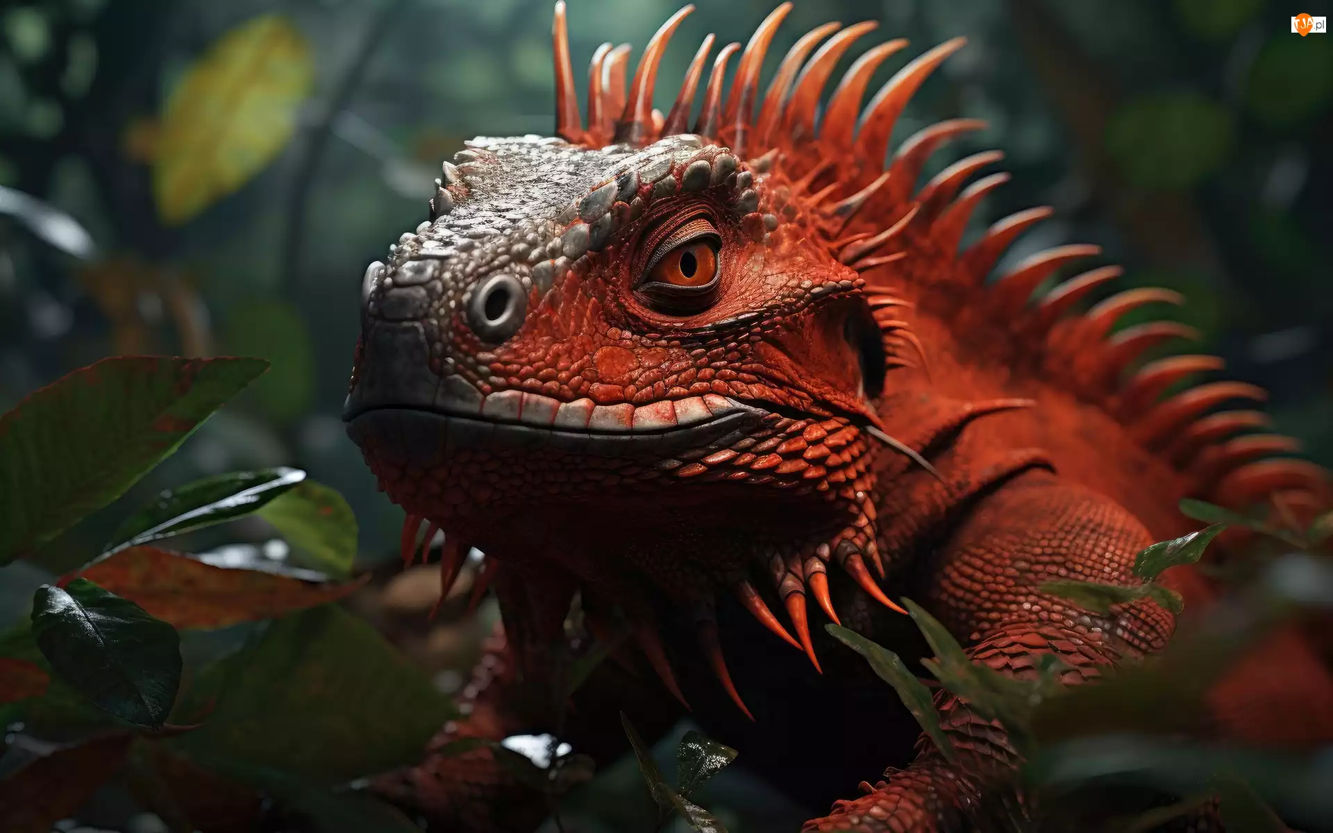 Głowa, Grafika, Czerwony, Legwan, Kolce