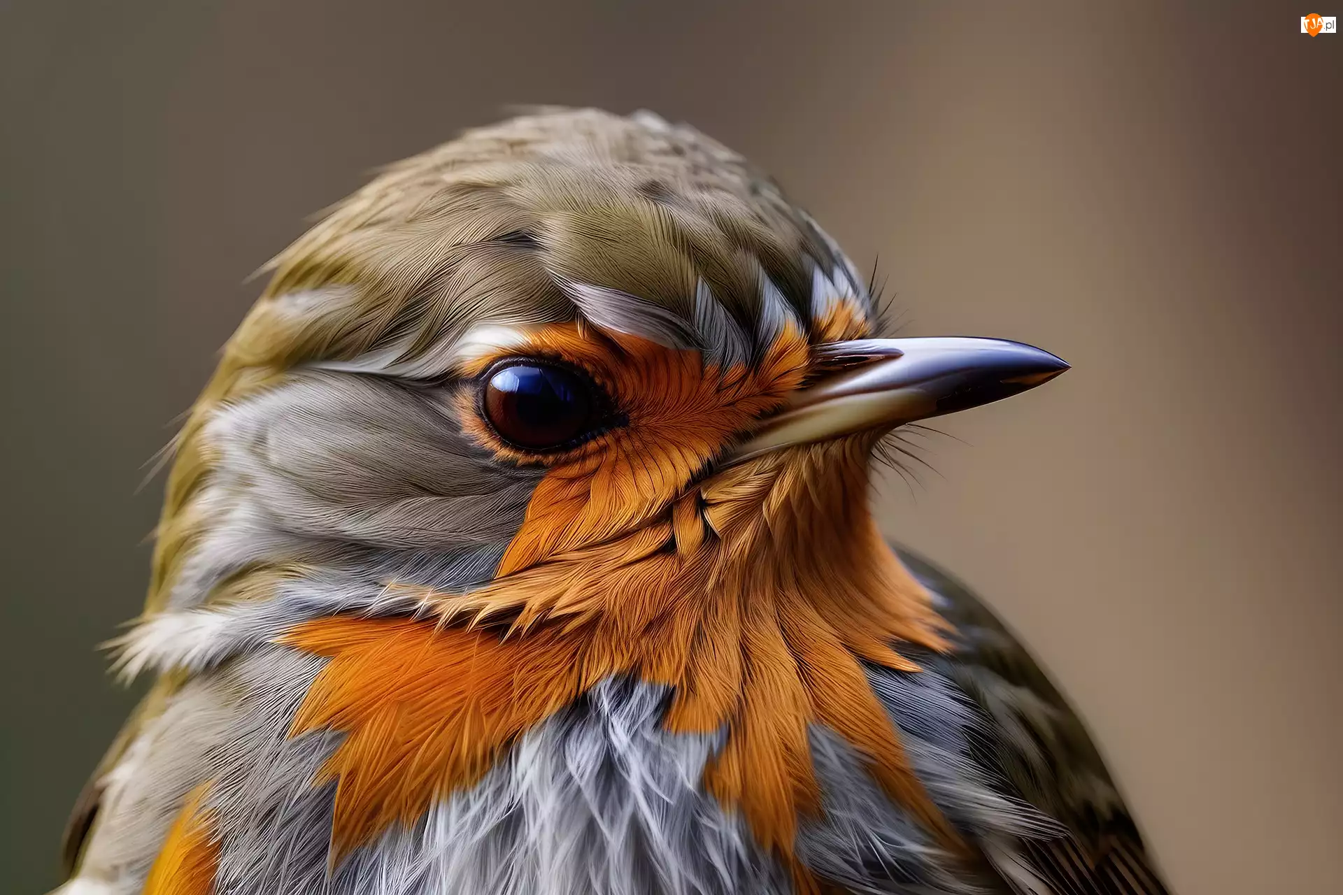 Głowa rudzika na szarym tle