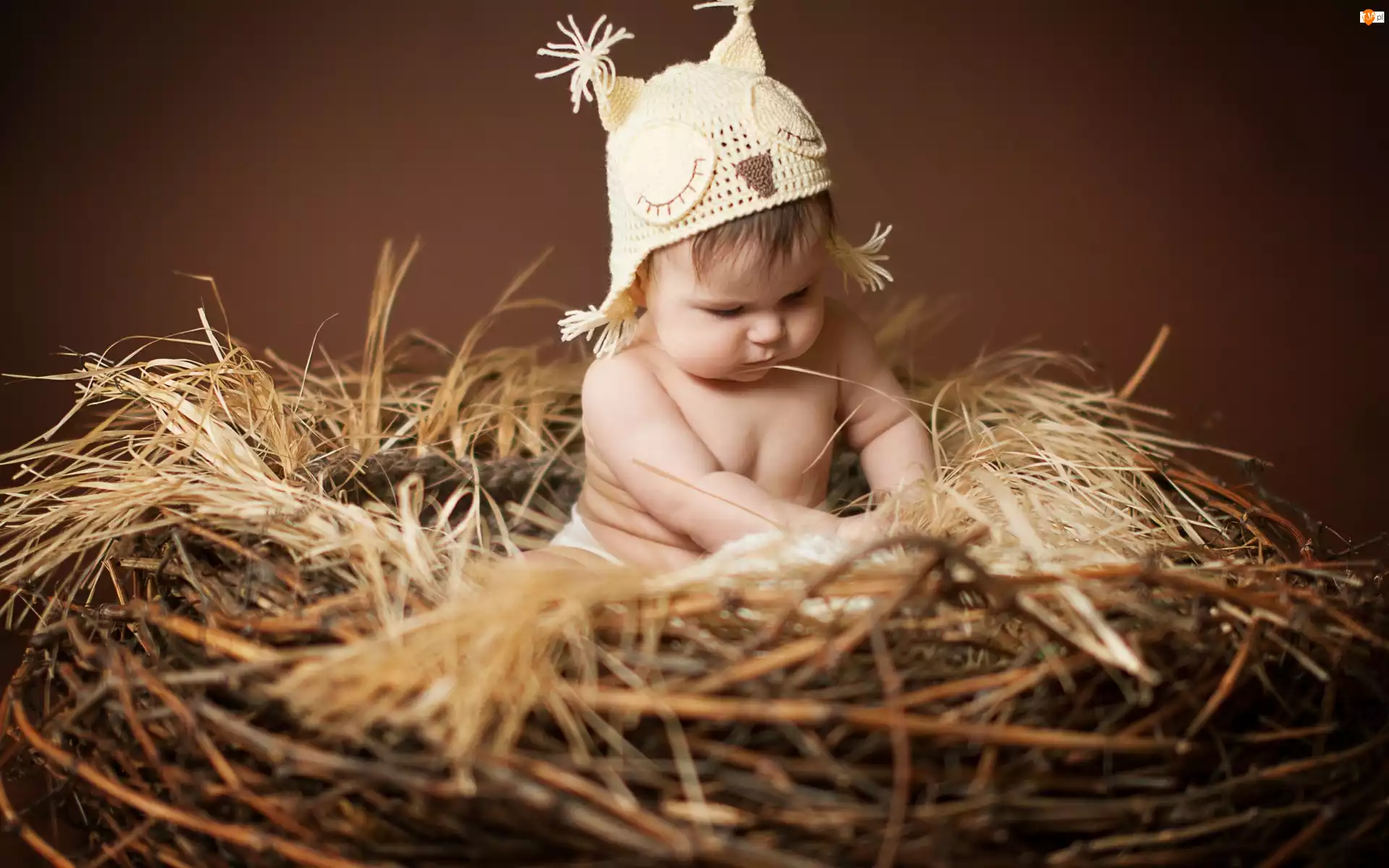 Czapeczka, Gniazdo, Dzianinowa, Dziecko, Słoma
