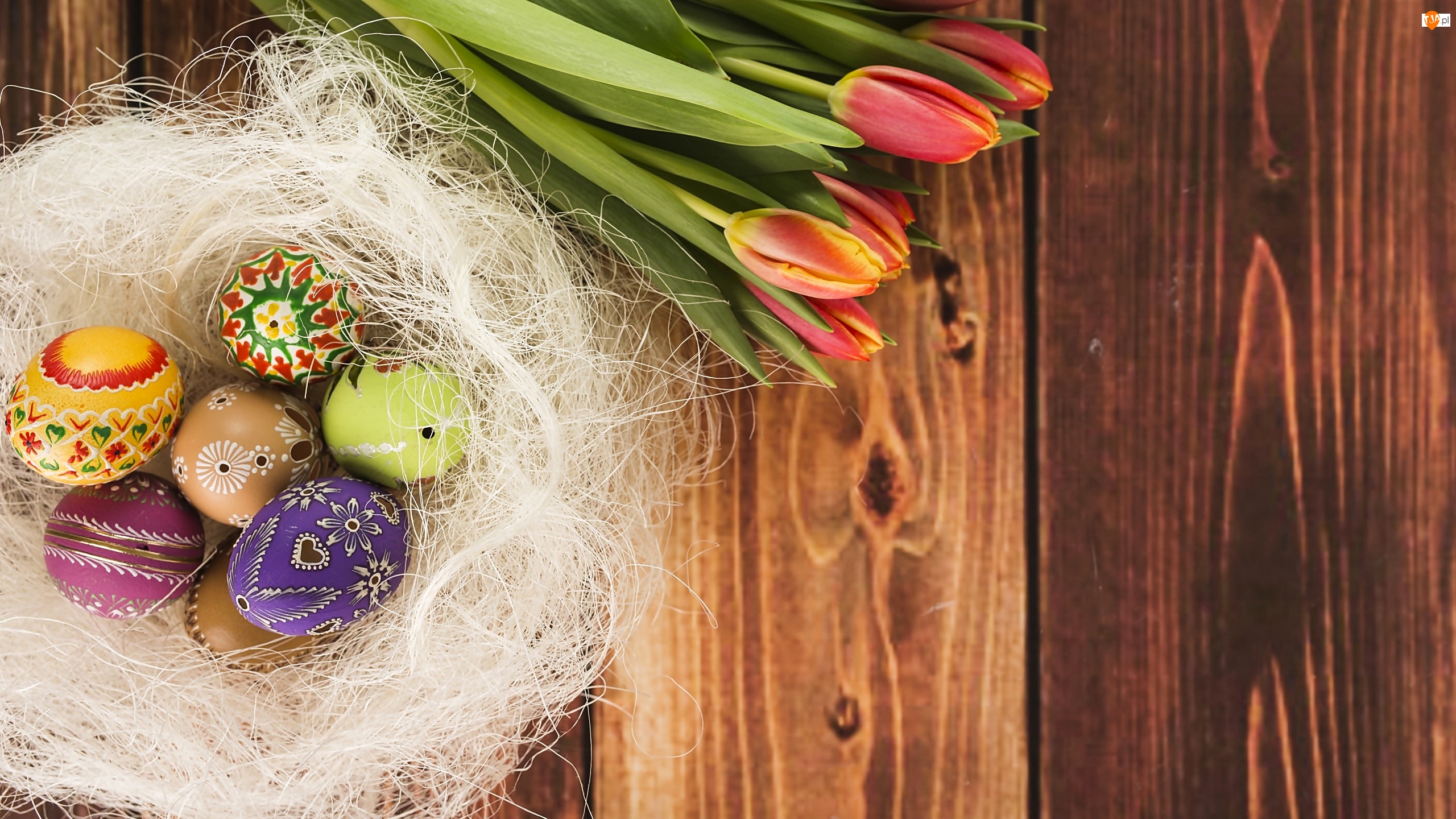 Tulipany, Wielkanoc, Gniazdo, Pisanki, Deski