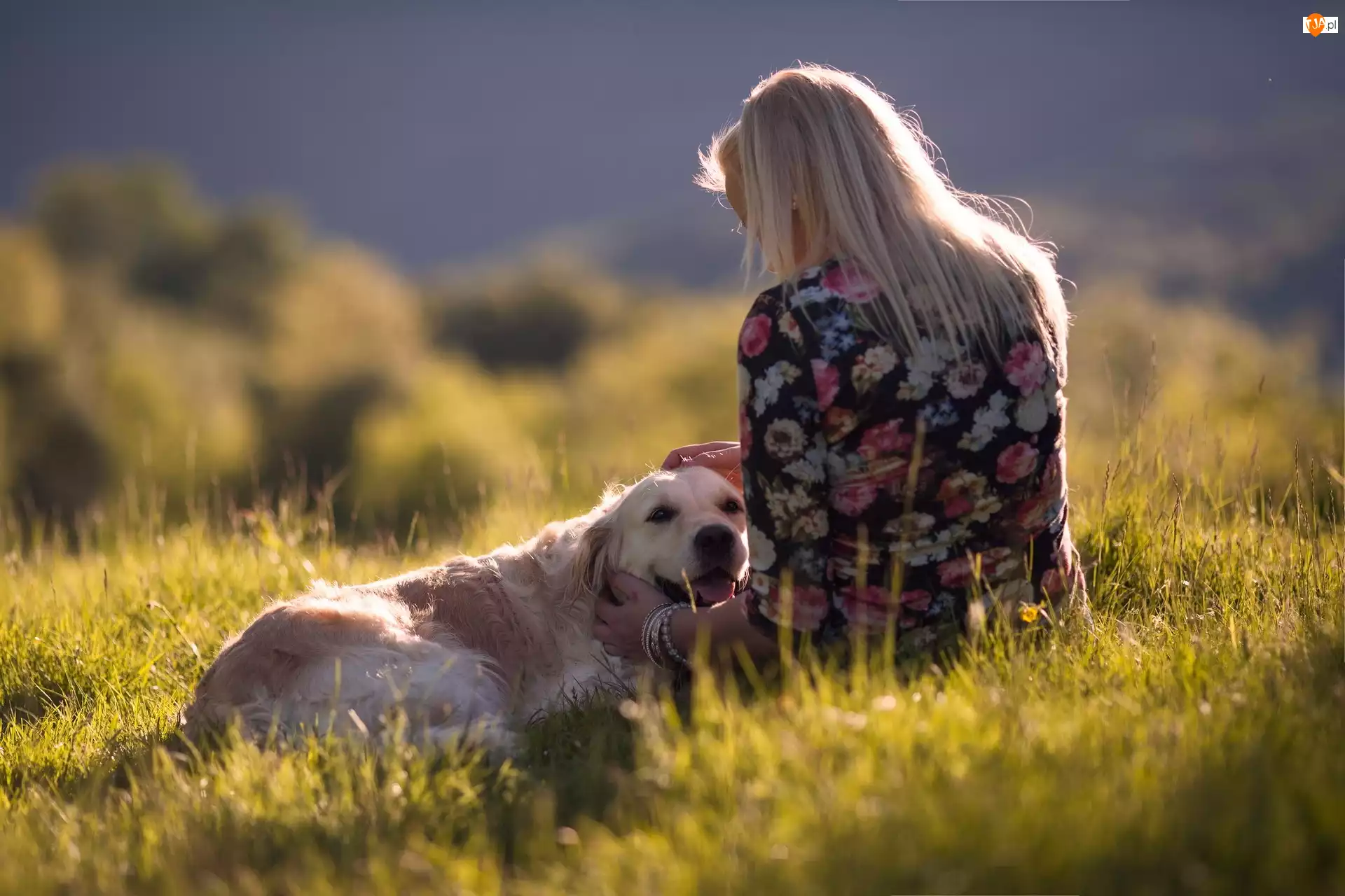 Golden Retriever, Dziewczyna, Łąka