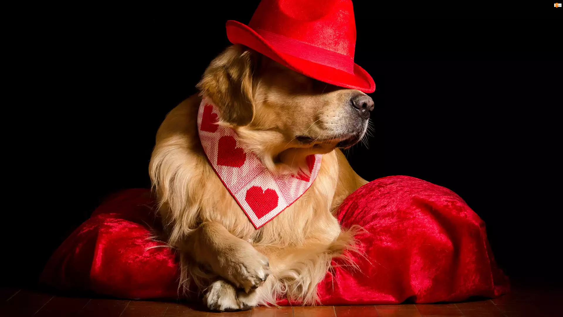 Poduszka, Golden retriever, Czerwony, Kapelusz