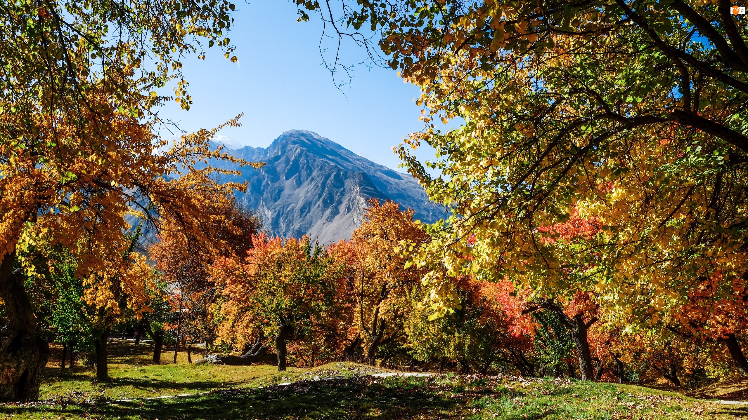 Góry Karakorum, Drzewa, Jesień, Pakistan, Park, Gilgit-Baltistan