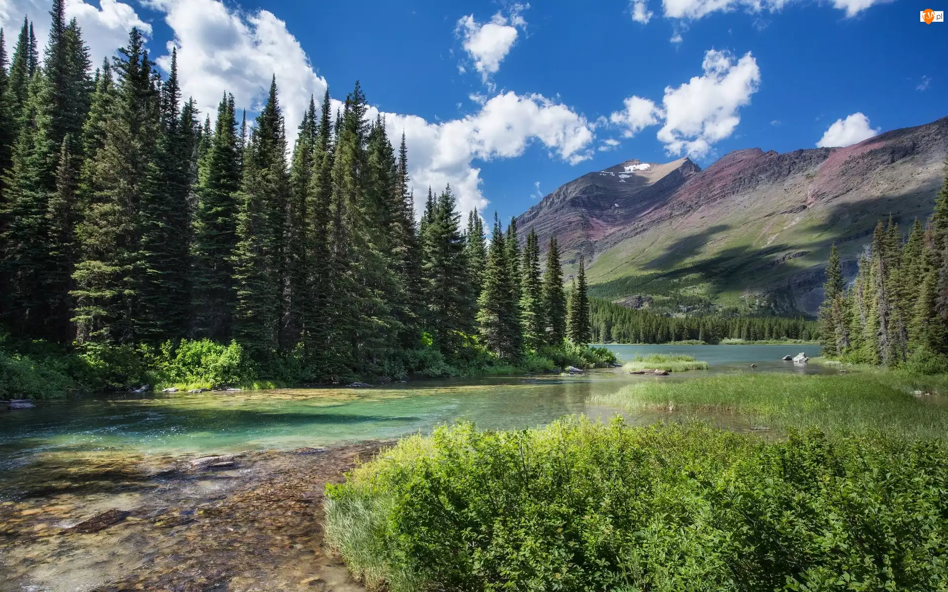 Stan Montana, Stany Zjednoczone, Rzeka, Góry, Park Narodowy Glacier, Las