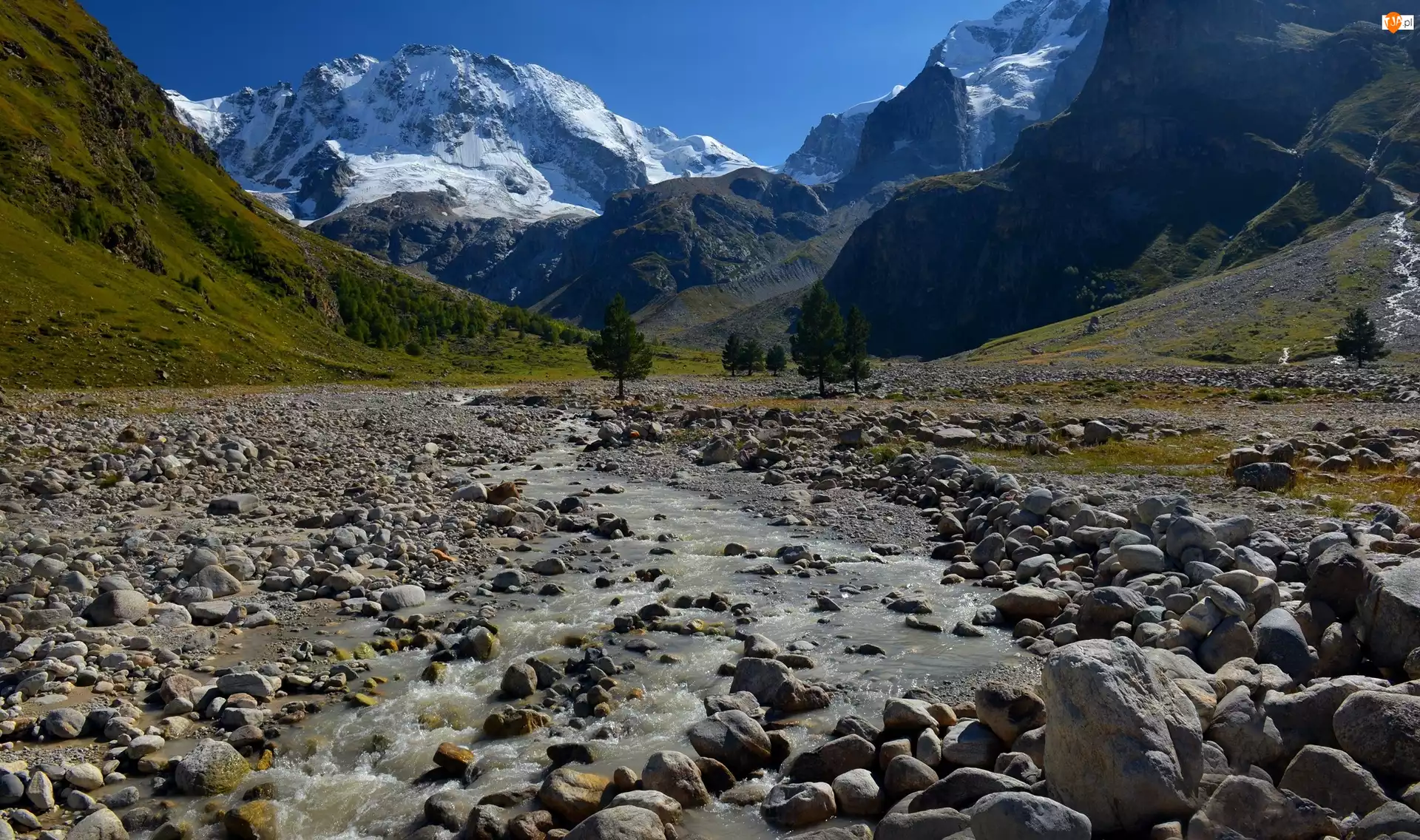 Potok, Drzewa, Kamienie, Góry, Rzeka