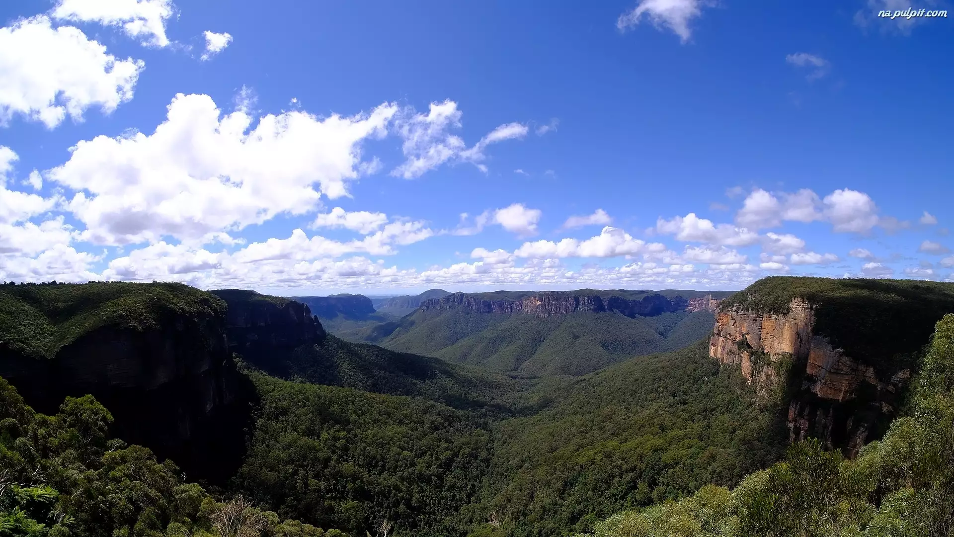 Roślinność, Niebo, Australia, Góry Błękitne, Nowa Południowa Walia, Park Narodowy Gór Błękitnych, Chmury