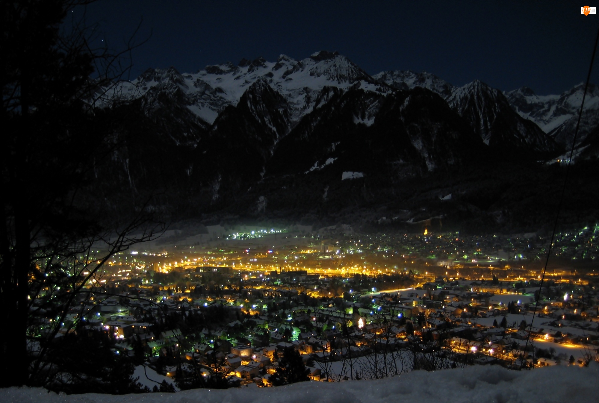 Góry, Bludenz, Noc, Z lotu ptaka, Miasto, Austria