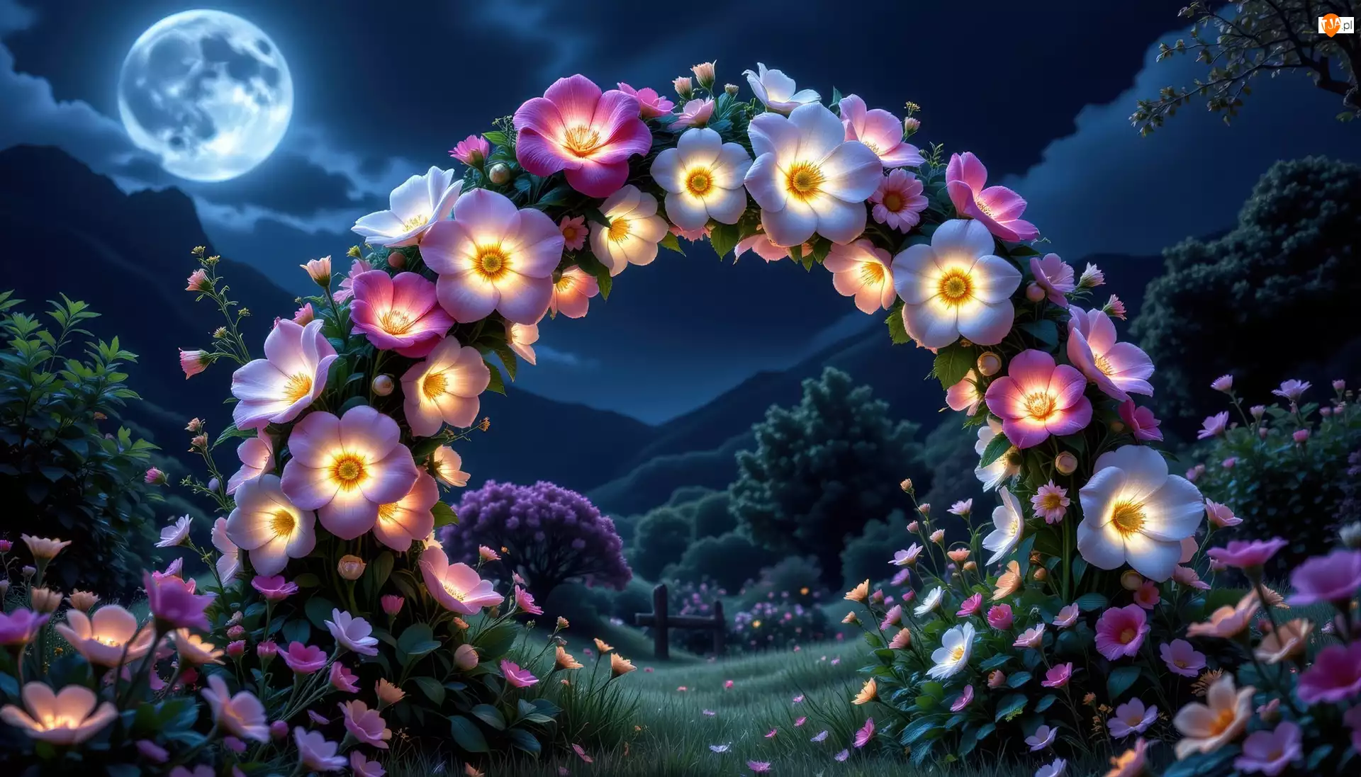 Tagi: Góry Grafika AI Łuk Kwiaty Noc
